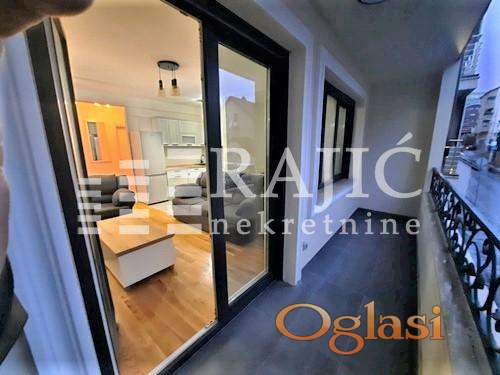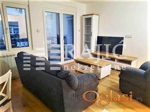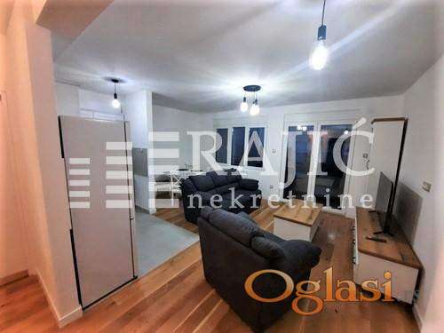 Prostorije: hodnik, dnevni boravak sa kuhinjom i trpezarijom, dve spavaće sobe, kupatilo, gostinjski toalet, prostrana terasa.