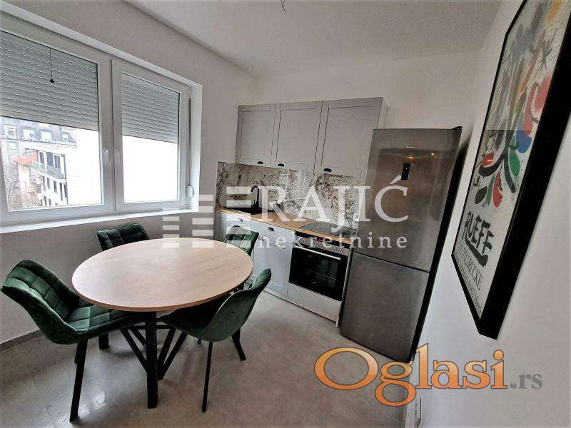 Izdaje se vrlo lep stan, potpuno renoviran i opremljen kvalitetnim uređajima i nameštajem, u blizini Vukovog spomenika.