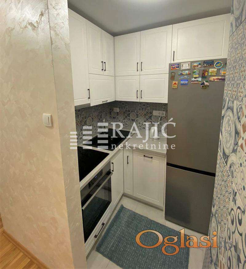 Prostorije: ulazni hodnik, dnevna soba sa trpezarijom, kuhinja, ostava, velika spavaća soba, manja soba koja se trenutno koristi kao radna i može se preurediti po potrebi u dečiju sobu, kupatilo, zatvorena lođa i terasa.