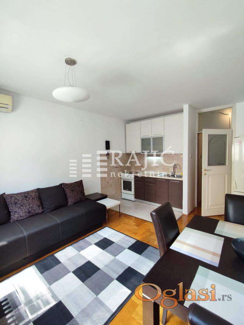 Izdaje se lep, svetao stan u mirnom kraju grada. Funkcionalnog rasporeda prostorija: ulazno predsoblje, dnevni boravak sa kuhinjom i trpezarijom, kupatilo, spavaća soba i komotna terasa. Stan je namešten i u potpunosti opremljen. Zgrada je uredna, održavana, sa interfonom i liftom. Provizija agencije 50% 0605547425 0605557420