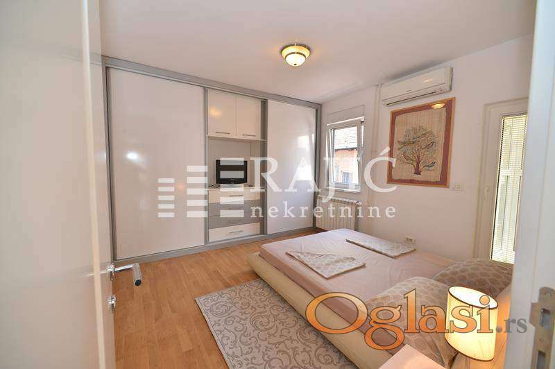 Luksuzan stan, vrlo lepog enterijera u centru Vračara - pogled na vrt, svetao, udoban za život. Izuzetan, luksuzan stan, na ekskluzivnoj lokaciji u najlepšem delu Mutapove ulice. Kompletno opremljen modernim nameštajem. PROSTORIJE:velika dnevna soba, dve spavaće sobe, dva kupatila, . Zgrada ima lift i svoju garažu, video nadzor. Agencijska provizija 50% 0605557420