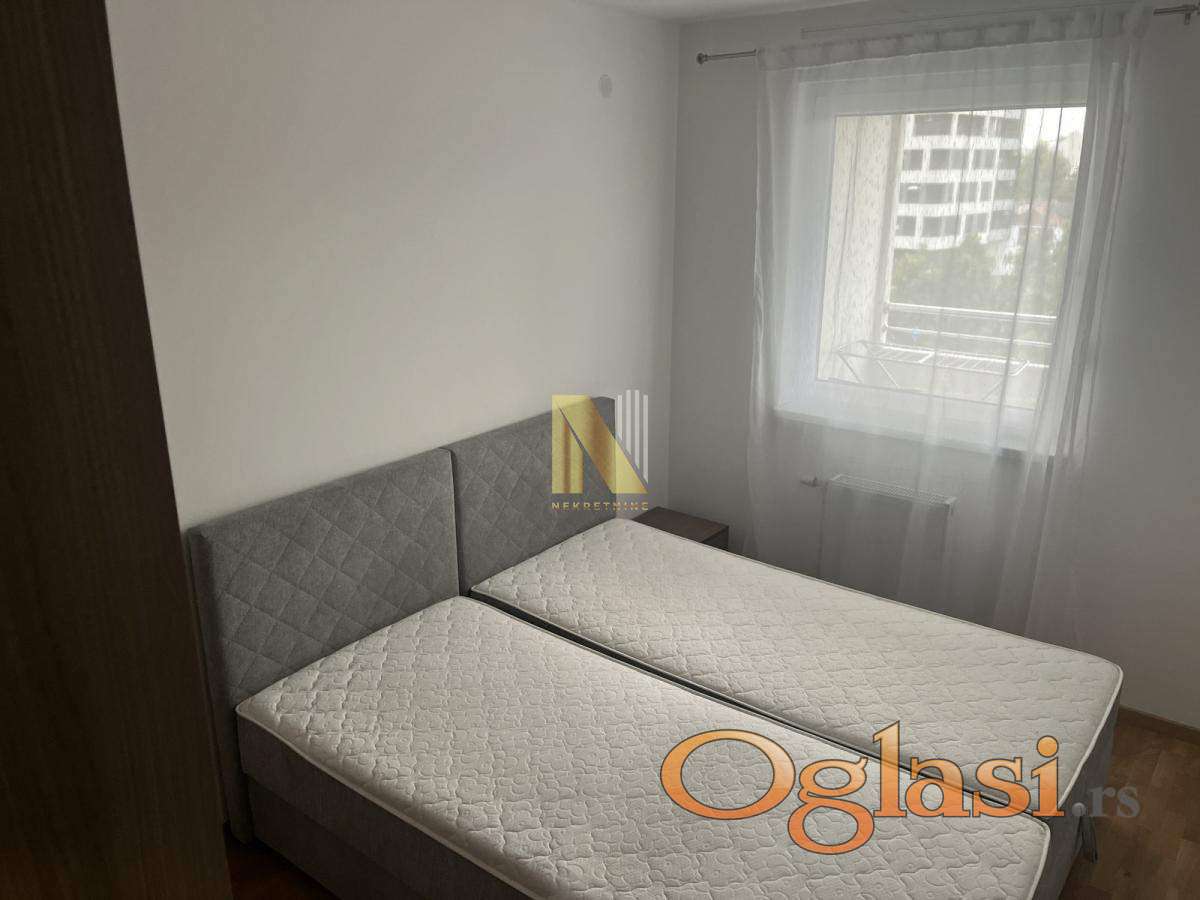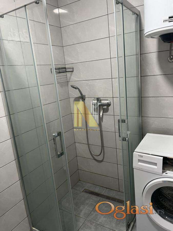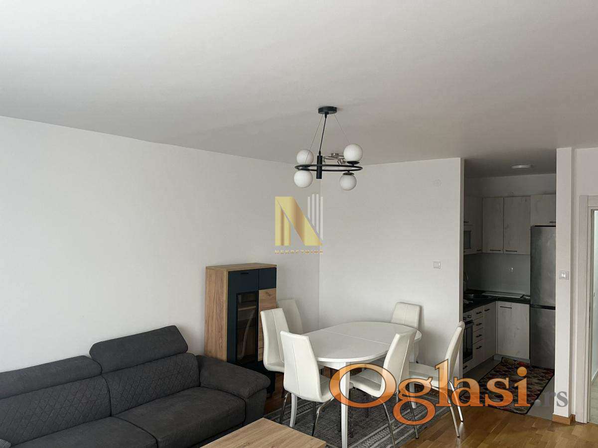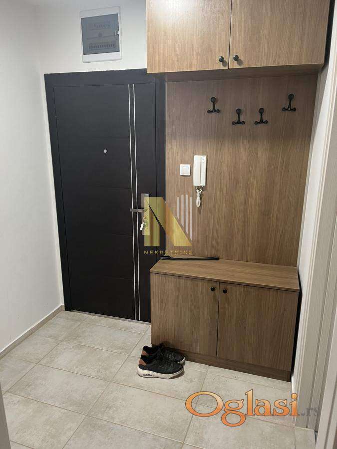 Izdaje se dvosoban nov namešten stan od 48 kvadratnih metara u Petrovaradinu na trećem spratu zgrade sa liftom izgrađene 2021. godine.