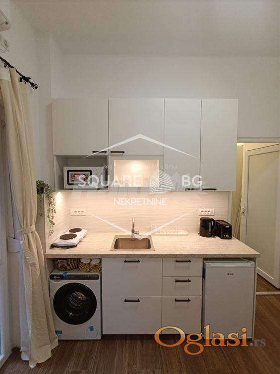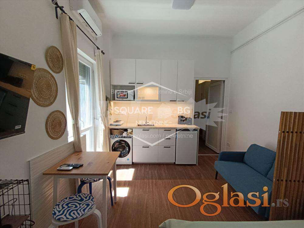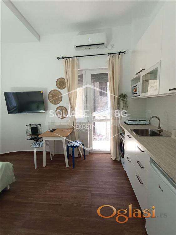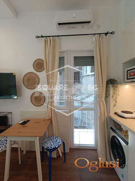 Nudimo vam kompletno renoviran, moderan studio u srcu Skadarlije, savršen za sve one koji žele udobnost i stil u jednom. Stan gleda prema unutrašnjem dvorištu zgrade, što omogućava mir i tišinu u strogom centru Beograda. • Površina: 25 m2 • Terasa: da • Sprat: prvi sprat • Grejanje: centralno • Uređaji: veš-mašina, frižider, klima uređaj, TV, mikrotalasna pećnica, kuvalo za vodu, toster, rešo sa dve ringle. Studio je opremljen modernim nameštajem i svim potrebnim uređajima, pružajući vam sve što je potrebno za udoban i prijatan boravak. Režije 100€. Agencijska provizija 50%