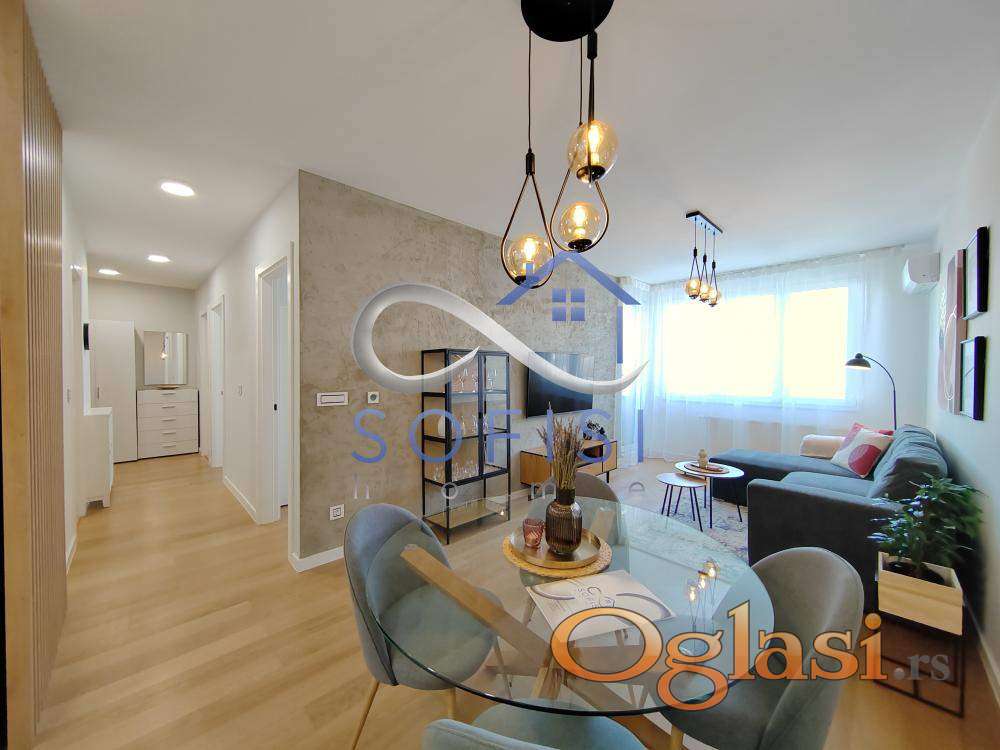 Novi Sad, Telep, ulica Heroja Pinkija. Izdvajamo iz ponude nov, neuseljavan, do detalja estetski osmišljen i opremljen, svetao trosoban stan u tek izgrađenom stambeno-poslovnom objektu visokog kvaliteta gradnje. Ovaj lep stambeni prostor opremljen potpuno novim nameštajem i belom tehnikom čine prostran dnevni boravak sa trpezarijom i velikom kuhinjom opremljenom kompletnim posuđem, escajgom i podrazumeva se - mašinom za pranje posuđa, dve spavaće sobe, veliko kupatilo sa tuš kabinom i mašinom za sušenje i pranje veša, toalet posebno i terasa sa izlazom iz dnevnog boravka i sobe. Rezervisano parking mesto u garaži koja se nalazi u suterenu objekta. Električni podizači roletni. Klimatizovan, Smart TV 55 inča, pegla, usisivač... Centralno grejanje na gas sa kalorimetrom. U zgradi su dva supermarketa, ispred je autobuska stanica. Useljv odmah. Izdavanje isključivo pod ugovornom obavezom od minimum 12 meseci zaposlenim zakupcima, nepušačima, bez kućnih ljubimaca. Potreban sigurnosni depozit u visini zakupnine.