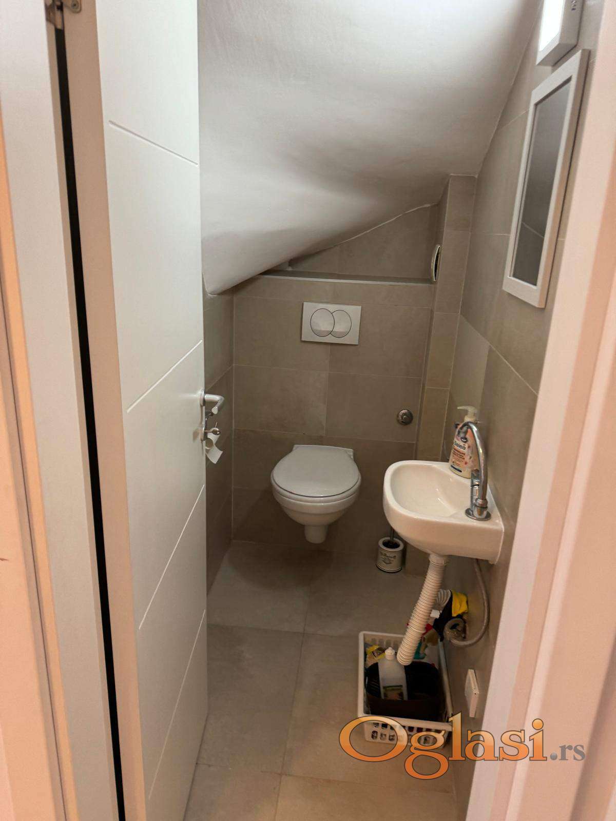 Na donjem nivou nalazi se prostrana dnevna soba sa trpezarijom, idealna za svakodnevni boravak i druženje, funkcionalna kuhinja kao i toalet, što dodatno doprinosi komforu.