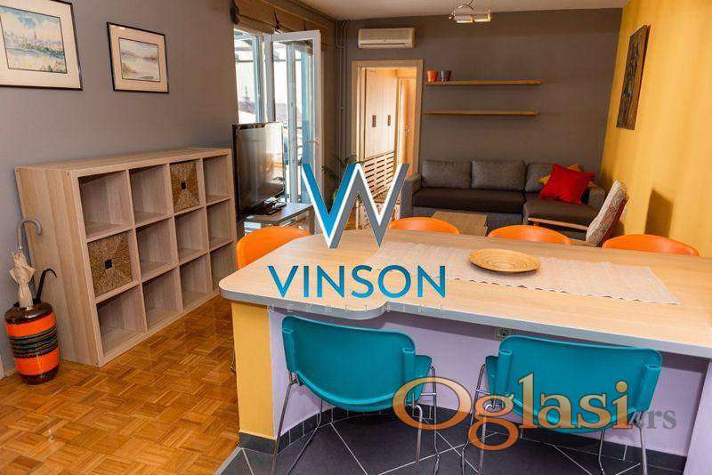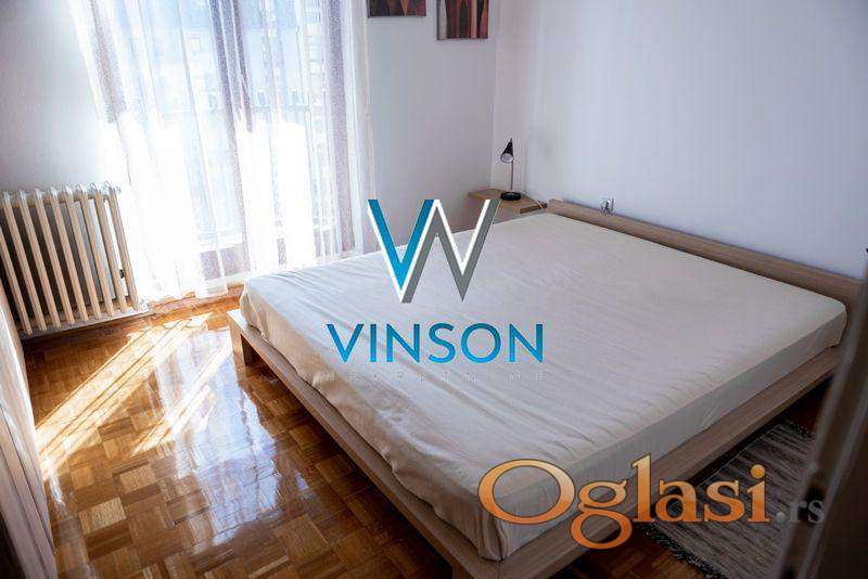 Novi Sad, Centar, ulica Železnička. Namešten, komforan, po strukturi dvoiposoban stan koji se nalazi nadomak strogog centra grada i pešačke zone, Pupinove palate i niza poslovnih i trgovinskih objekata. Ovaj stambeni prostor čine svetao dnevni boravak sa trpezarijom i kuhinjom, dve spavaće sobe, kupatilo sa kadom i dve terase. Pozicioniran na IV spratu stambene zgrade sa liftom. Izdaje se na duži vremenski period zakupcima bez kućnih ljubimaca. Useljiv od 01.04.2026. godine. (Vinson nekretnine, Novi Sad, Reg. br. posrednika: 1085)
