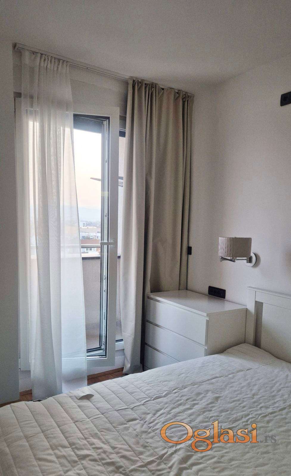 Izdaje se izuzetno lepo namešten, potpuno nov i neuseljavan dvosoban stan.Stan se nalazi u novoj zgradi useljenoj  2026. godine.