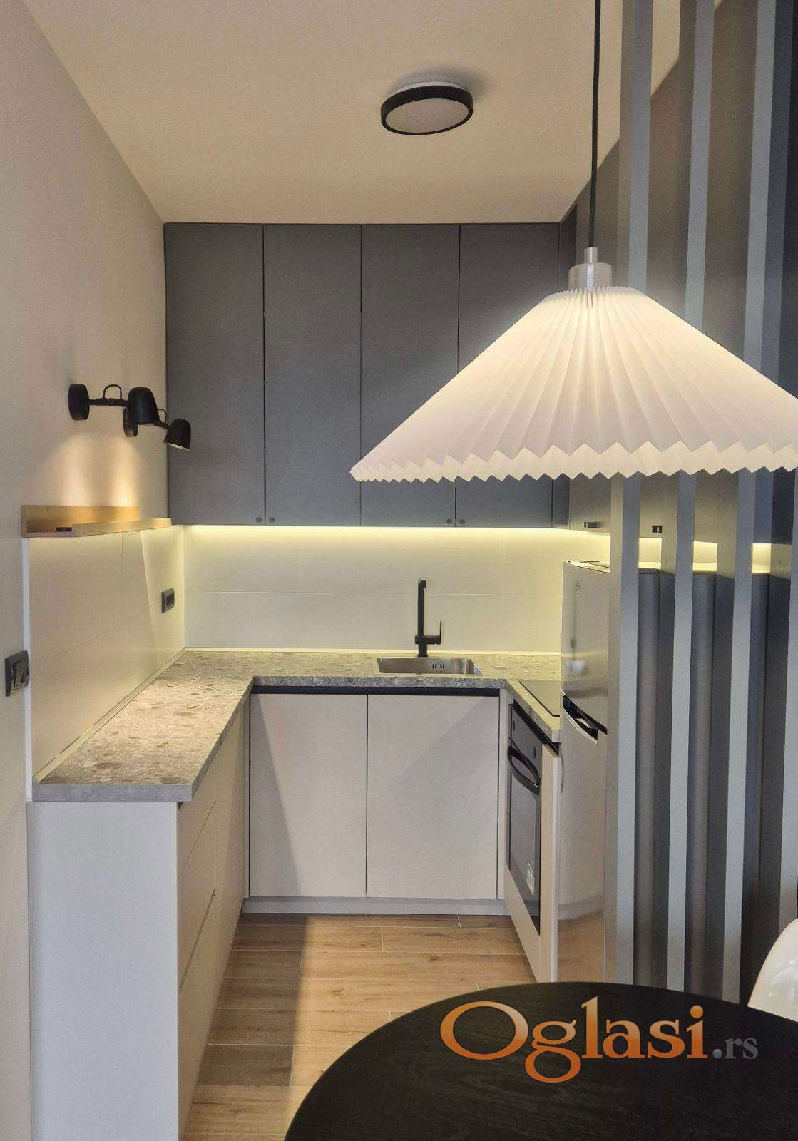 Stan je potpuno namešten i opremljen novim uređajima: TV, klima uređaj, veš mašina, sudo mašina, frižider i zamrzivač, šporet i rerna, kompletni kuhinjski elementi, ležaj i plakar