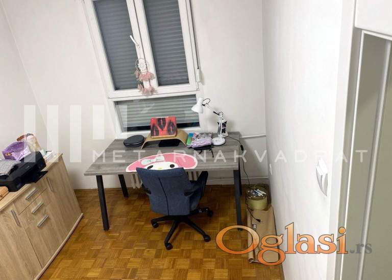 Stan je polunamešten i poseduje kompletnu belu tehniku, ugradne ormare, trpezarijski sto i stolice. Stanu pripada i podrum.
