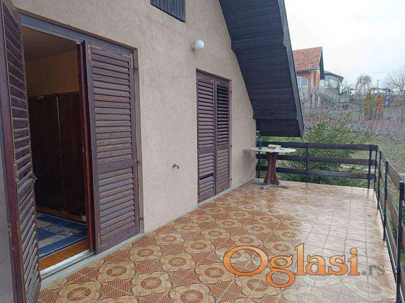 Predstavljamo vam interesantnu, spratnu kuću u Rakovcu. Uvučena od buke i saobraćaja, može se koristiti kao vikendica ali i za život tokom cele godine. Nalazi se na placu od 746m2, koji pruža odličan pogled. Kuća se sastoji od prizemlja i potkrovlja. U prizemlju se nalaze prostrana dnevna soba sa trpezarijom i kuhinjom, spavaća soba i jedno kupatilo. U potkrovlju je još jedno kupatilo, kao i dve spavaće sobe sa izlazom na veliku terasu, koja pruža pogled ka dvorištu. U neposrednoj blizini kuće nalaze se škola, market, autobusko stajalište,...Za više informacija pozovite naše agente.