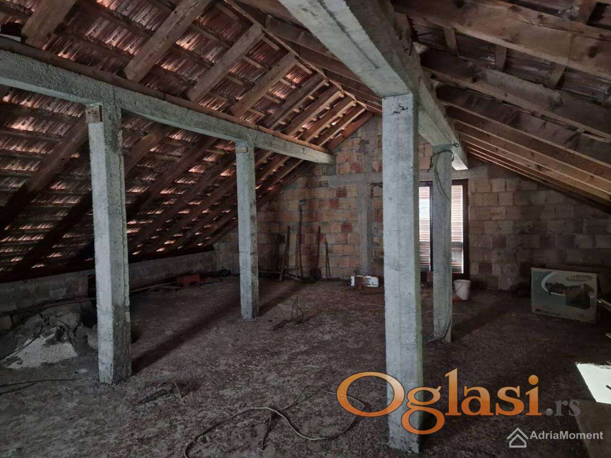 Dva apartmana – sa 2 spavaće sobe – svaki je površine 82 m2. Plus stan u potkrovlju (upisan u List nepokretnosti).