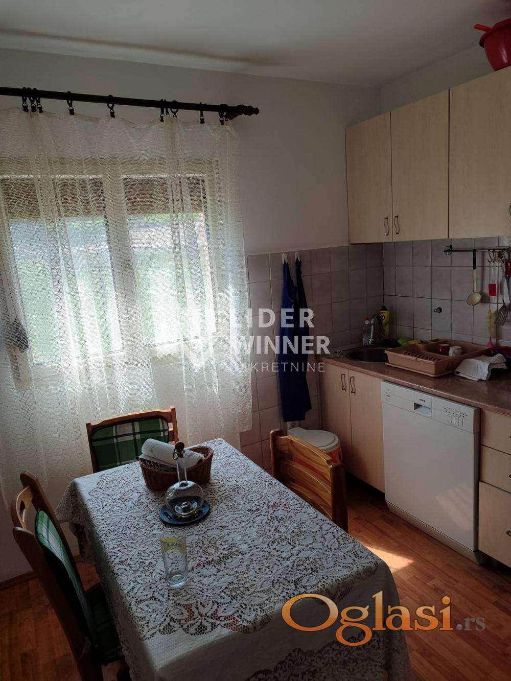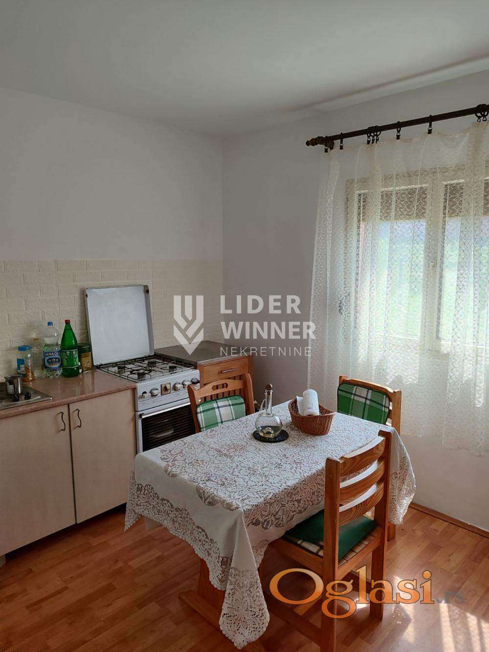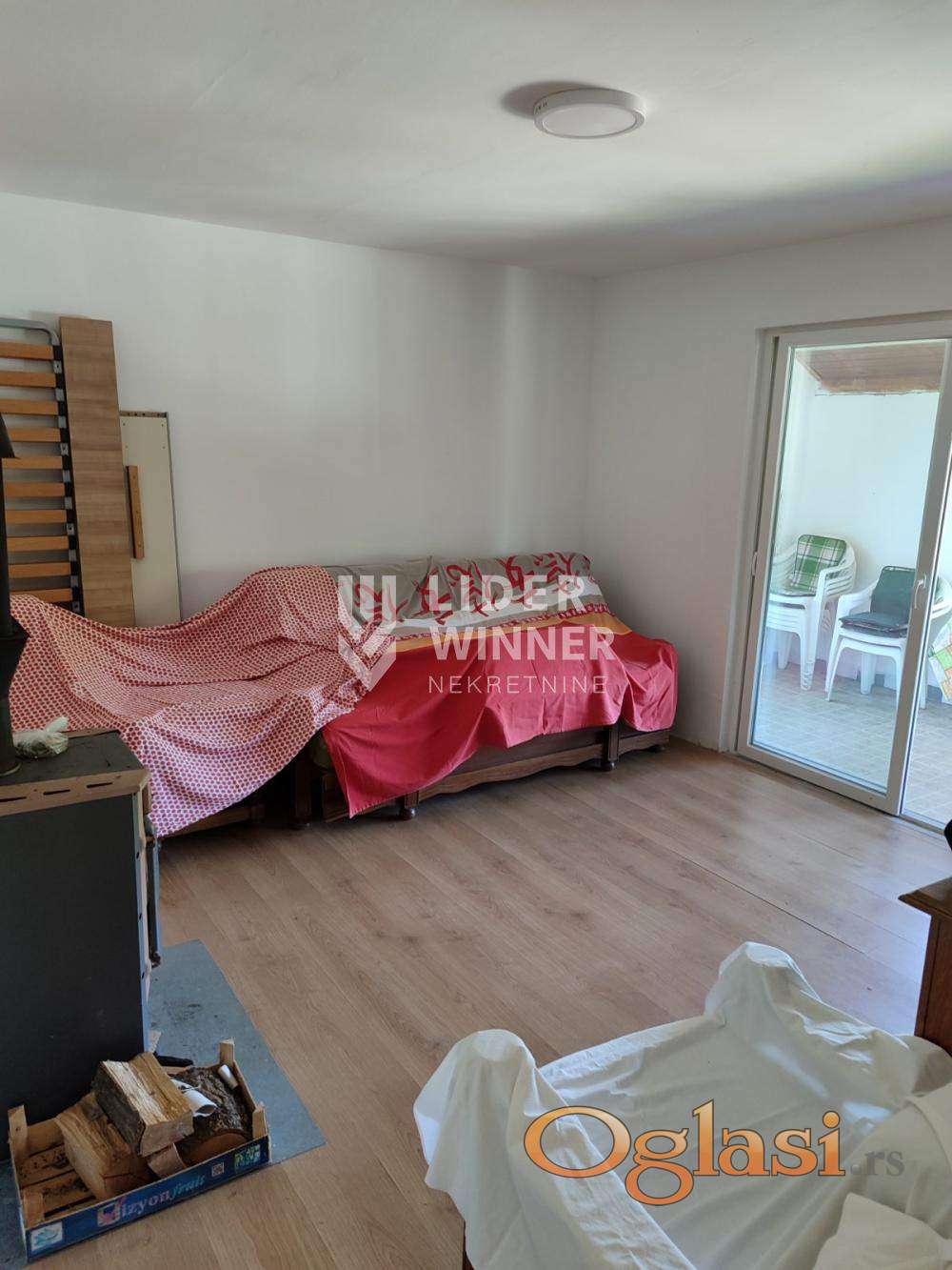 Trosobna kuća sa kuhinjom, kupatilom, tremom i podrumom. Na tavan je izvedena vodovodna i strujna instalacija i može se dobiti još 87m2 stambenog prostora.