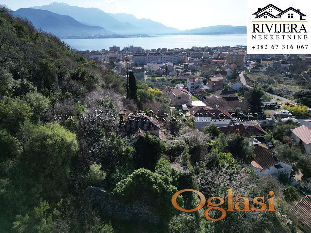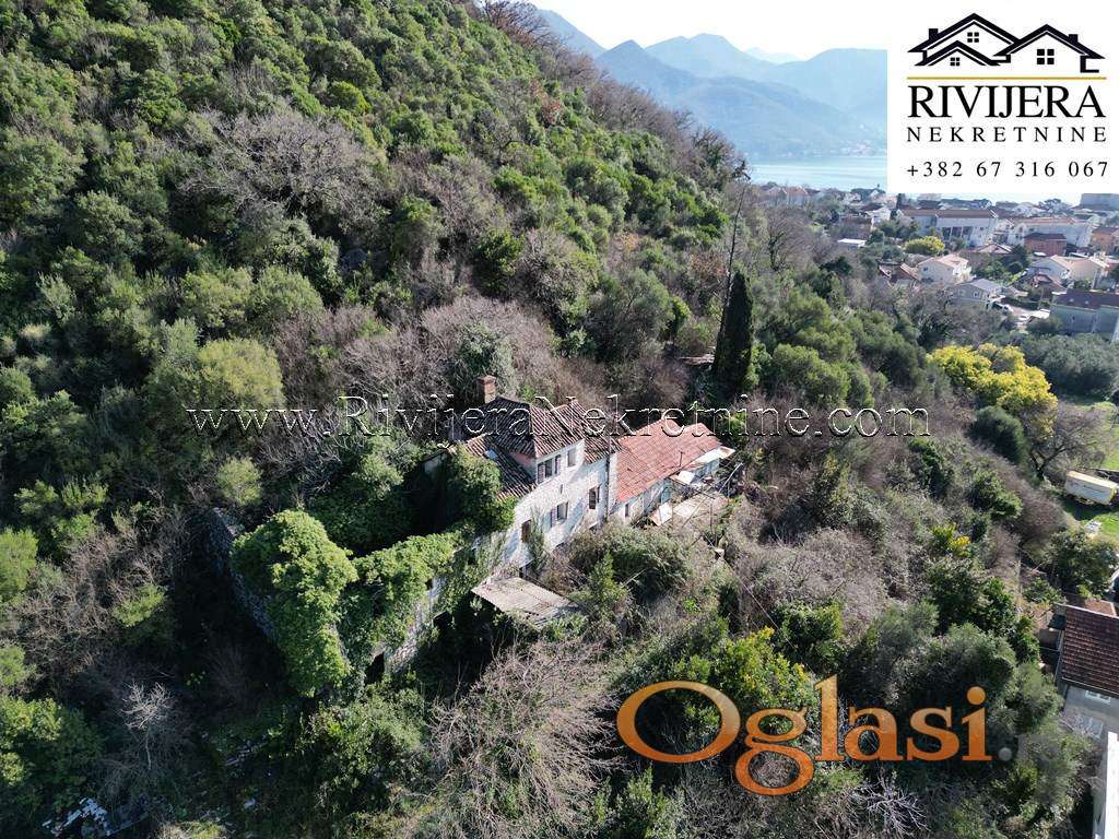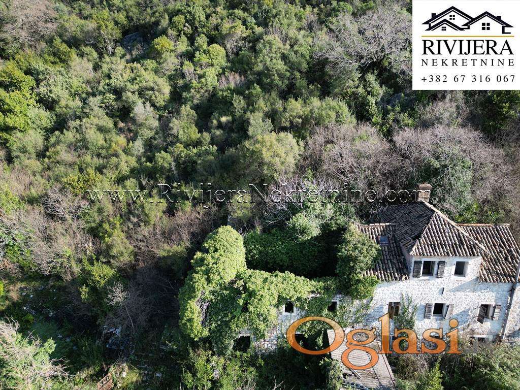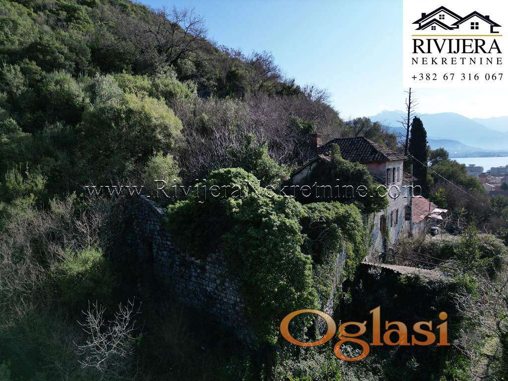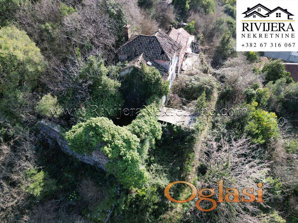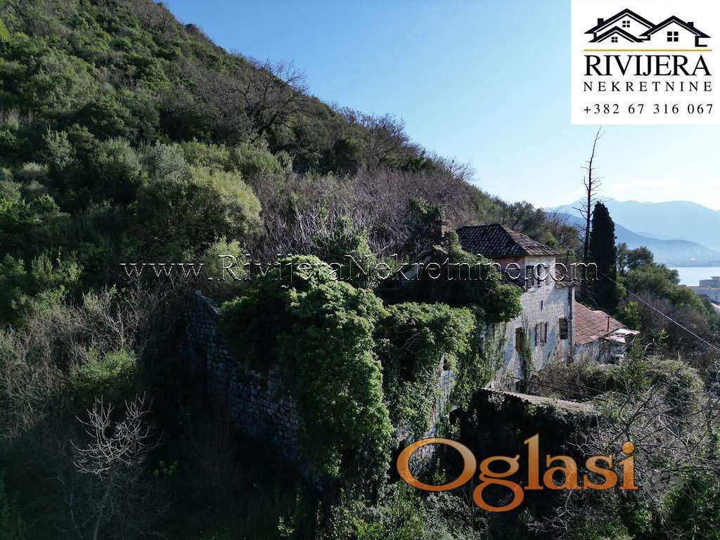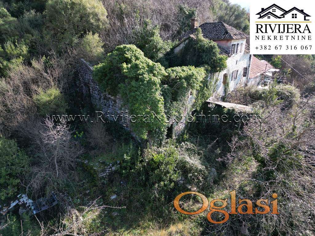 Povoljno kamena ruina sa pogledom na more Bijela Herceg Novi. Povrsina kuce u osnovi 57 m2 (bruto povrsine), prizemlje + prvi sprat. Povrsina dvorista 23 m2. Udaljenost od mora oko 1.5km, centra Bijele 1km, kuca nema kolski prilaz vec pjesacki od javnog puta (oko 70 metara).