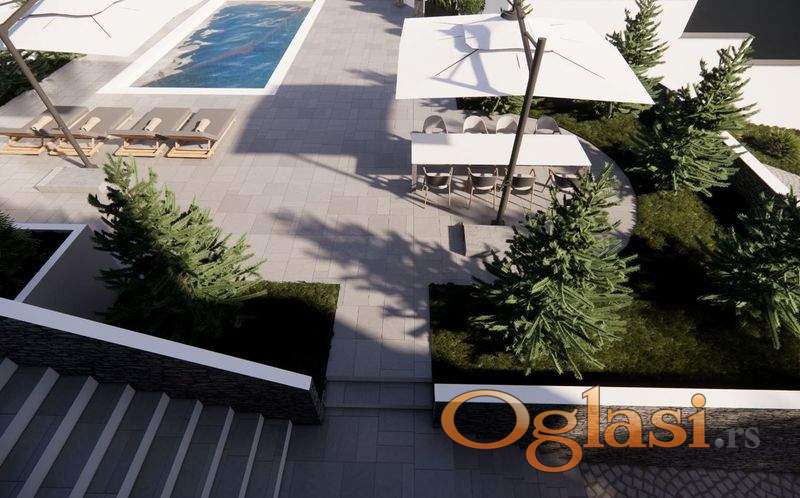 Luksuzno naselje " MAGNOLIA GARDEN" sa prelepim pogledom na kompletan Novi Sad i Dunav. Put do komplexa, kao i unutar samog - asfaltiran. Jedna zaista nesvakidašnja ponuda gde se naselje sastoji od 5 izuzetnih kuća, svaka sa svojim placem na kojima je predviđen bazen. Sastoje se od prizemlja gde su predviđeni klub prostorija u portalima od 30m2, zatim spa,tuš i relax zona i u produžetku objekta velika dupla garaža, na spratu je veliki dn.boravak takođe u portalima sa panoramskim pogledom na grad, master soba, garderoberi i prelepa terasa od 45m2, sl.sprat su master sp.sobe i terasa. Gradska voda i kanalizacija uvedeni u objekte, centralna klima (grejanje i hlađenje), podovi tarkett visoke klase, aluminijumska stolarija i portali sa troslojnim staklima, podno grejanje - gas ! Izuzetno kvalitetno urađeno sve do jednog detalja, trenutno se završavaju parketi i kreću sa parternim uređenjem.