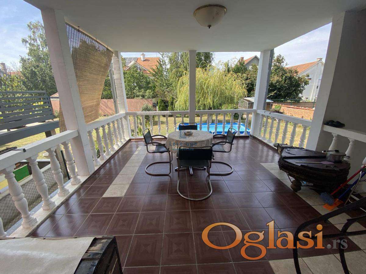 Kuća je veoma lepo održavana, sa urednim dvorištem, kapijom od kovanog gvoždja i parkingom za 8 vozila.