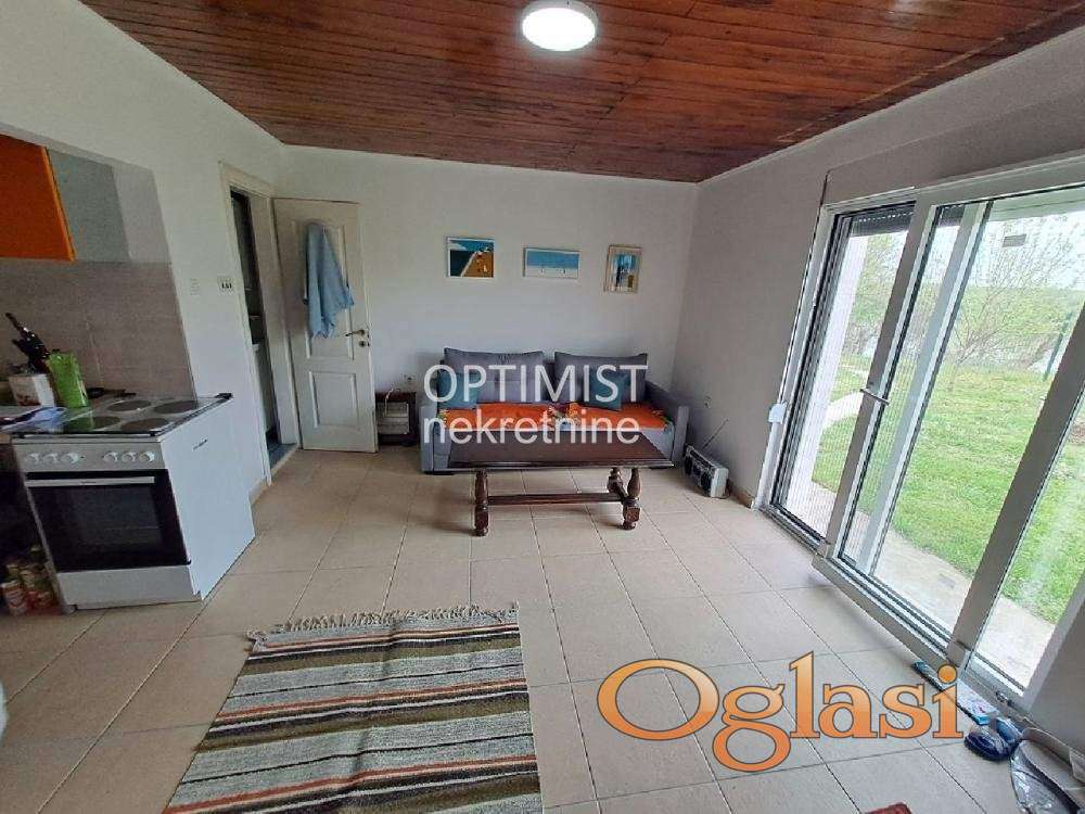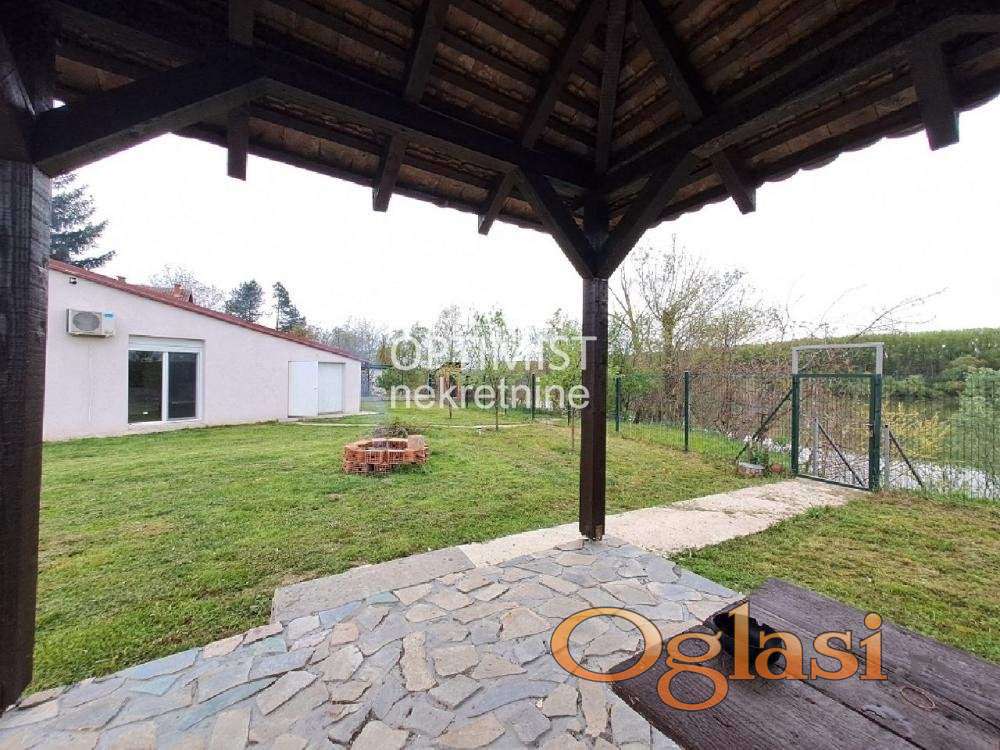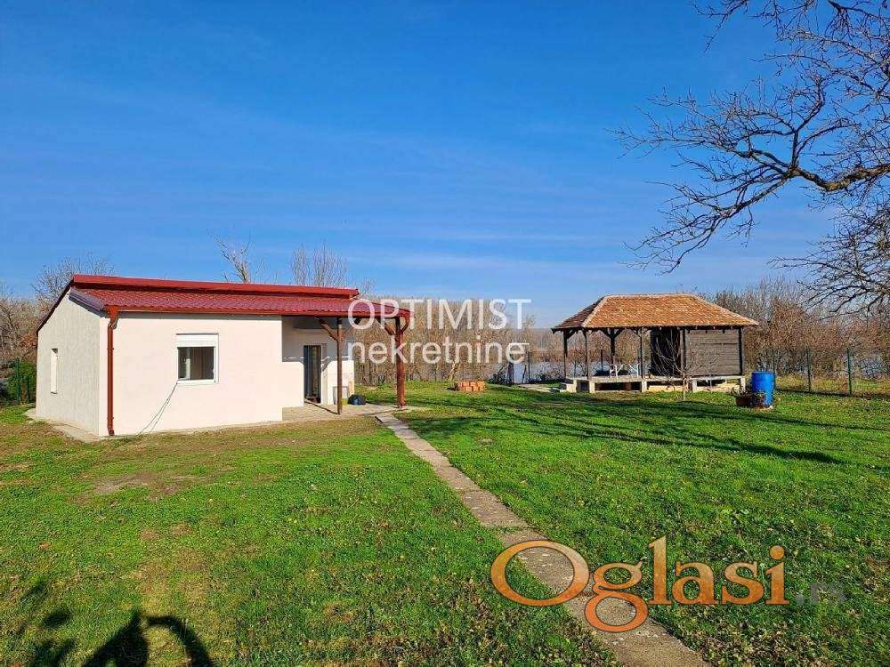 Renoviranu kuću površine 70m², sa novom fasadom, krovom i aluminijumskom/pvc stolarijom. Kuća sadrži dve spavaće sobe, prostrani dnevni boravak, moderno opremljenu kuhinju, kupatilo, te veliku garažu pogodnu za čamac.