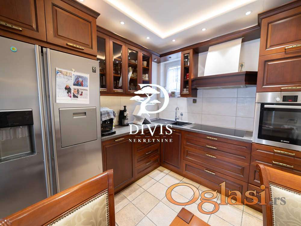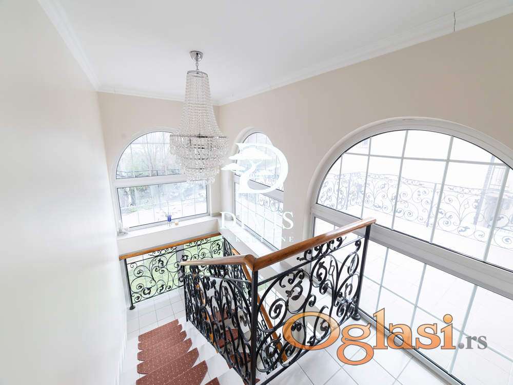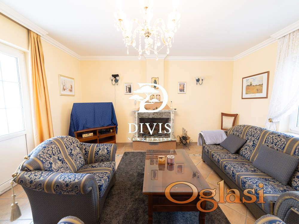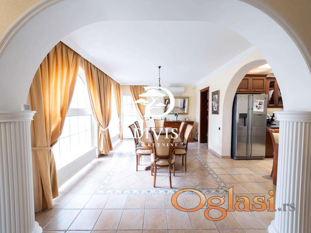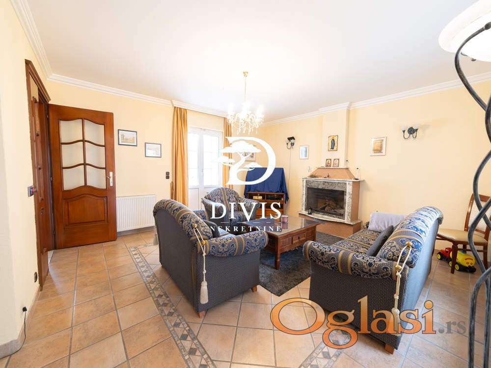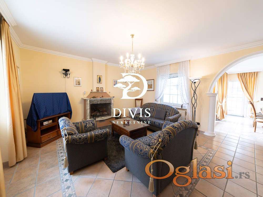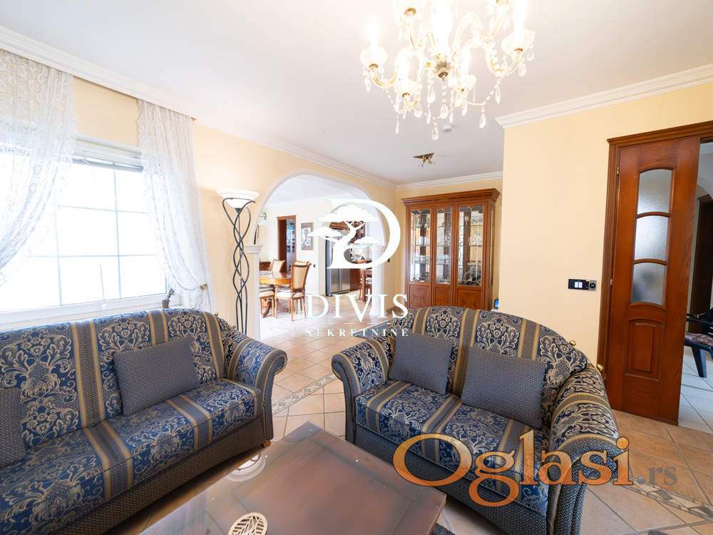 Sastoji se od prizemlja u kom se nalaze dve spavaće sobe, gostinska soba, dva kupatila, prostrana dnevna soba sa trpezarijom i kuhinjom, na spratu su dve spavaće sobe, prostran dnevni boravak, kupatilo i dve terase, sa kojih se pruža predivan pogled ka Dunavu. U podrumu se nalazi "party soba" iz koje se izlazi na dvorište, pogodna za proslave malo većeg tipa, tehnička prostorija, vešernica, kao i dve ostave. Sve prostorije su opremljene kvalitetnim i ručno rađenim nameštajem, koji ostaje budućem vlasniku.Grejanje je centralno na gas. Kuća poseduje video nadzor, alarmni sistem zaštite, i moguć je priključak na smart-home sistem.