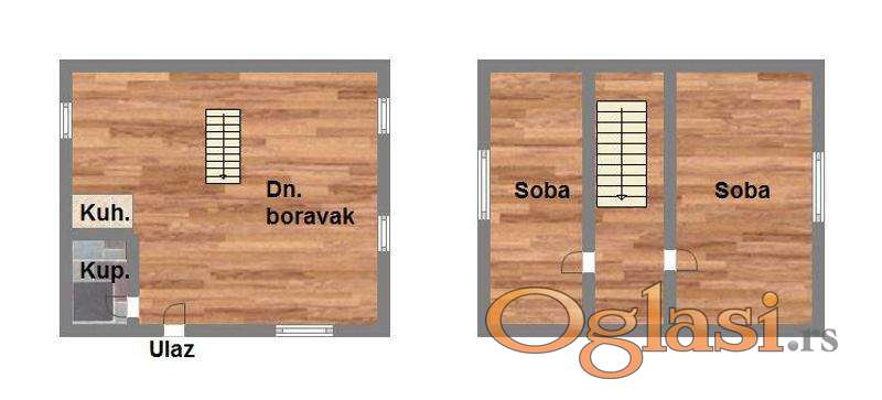 Predstavljamo Vam jedinstvenu nekretninu na našem tržištu. U pitanju je nova, nedavno izgrađena brvnara na prelepom placu od 909m2, sa odličnim pogledom. Kuća je u dve etaže, gde se na prizemlju nalaze dnevni boravak, kuhinja i kupatilo, a na spratu su se nalaze dve spavaće sobe. Kuća poseduje struju, vodu, septičku jamu. Nalazi se na svega 900m od asfaltnog puta. Prilazni put ka kući je delom zemljani, delom su betonske trake, ali svakako veoma dobar i prohodan. Sam plac kuće je u kaskadama, i veoma dobro iskorišćen. Odlična investicija ako želite da pređete u mirno i sveže okruženje da živite, a isto tako i kao investicija za izdavanje. Uz ovu nekretninu, postoji mogućnost kupovine i placa pored od 900m2, na kom se nalazi letnjikovac, a koji možete pogledati na našem sajtu pod šifrom 509471. Za sva dodatna pitanja i informacije, možete kontaktirati naše agente prodaje.