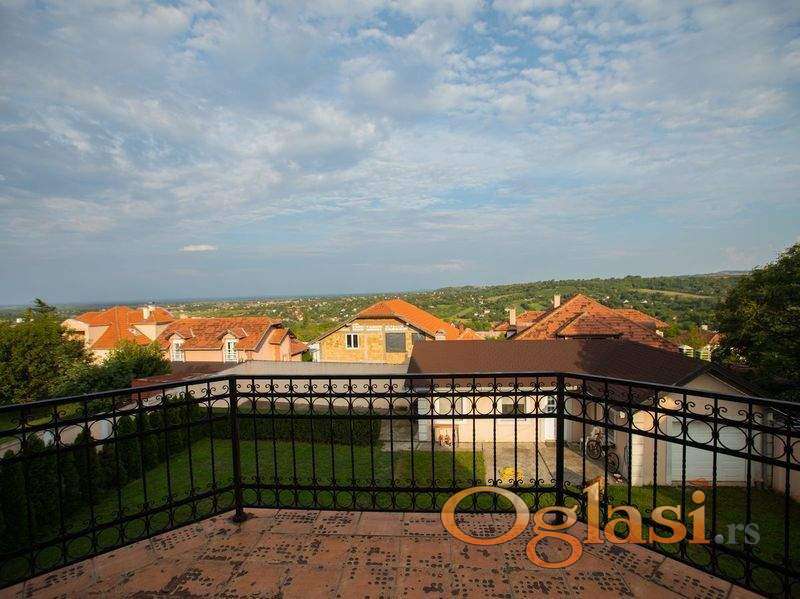 Fenomenalna kuća na top lokaciji-Tatarsko Brdo. Lux vila Ophelija, sa predivnim pogledom na Frušku Goru i njene obronke. U osnovi kuća ima 187 m2, bez ulaganja. Ostavljena su 2 kupatila i wc da se urade po kupčevoj želji. Odlična oprema, podno i radijatorsko grejanje na gas, bežični alarm, medijapan stolarija, WMC sistem. Kolski ulaz, garaža-daljinsko otvaranje, pomoćna prostorija 45m2, letnja kuhinja sa wc-om, tuš kabinom i kuhinjom, 4 terase. Fenomenalno organizovan prostor, u sklopu kuće bilijar sala, unutrašnji bazen. U suterenu alatnica, kotlarnica, garaža, kupatilo pripremljeno za saunu. Moguća zamena za stanove. Za više informacija pozovite.