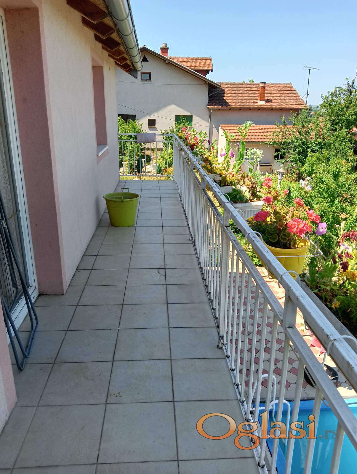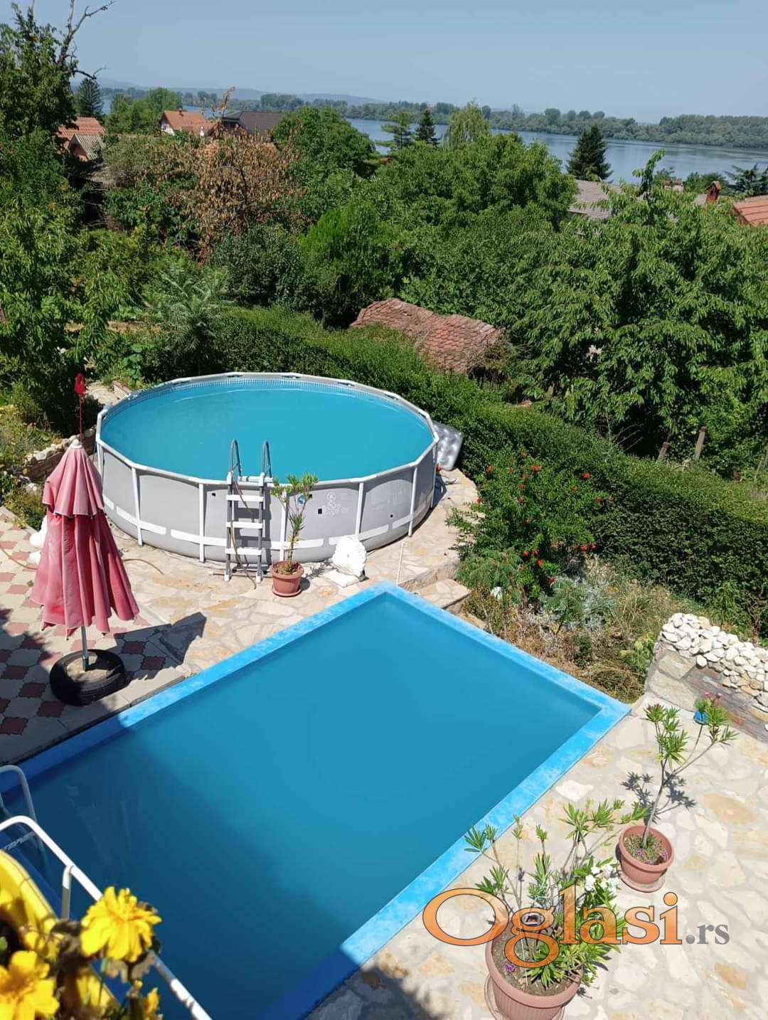 Veliko dvoriste sa bazenom. Bazen je betonski,sve oko bazena je popločano. U dnu dvorista se nalazi mala letnja kuhinja i jos jedan pomoćni objekat. Dvoriste je puno cveca. Poseduje 3 do 4 parking mesta unutar dvorista. Vlasnik 1/1, kuca je legalizovana, gradjena pocetkom 2011 godine. Cena 300.000 e ,postoji mogucnost korekcije cene. Kontakt tel. 063/8717174 Sonja