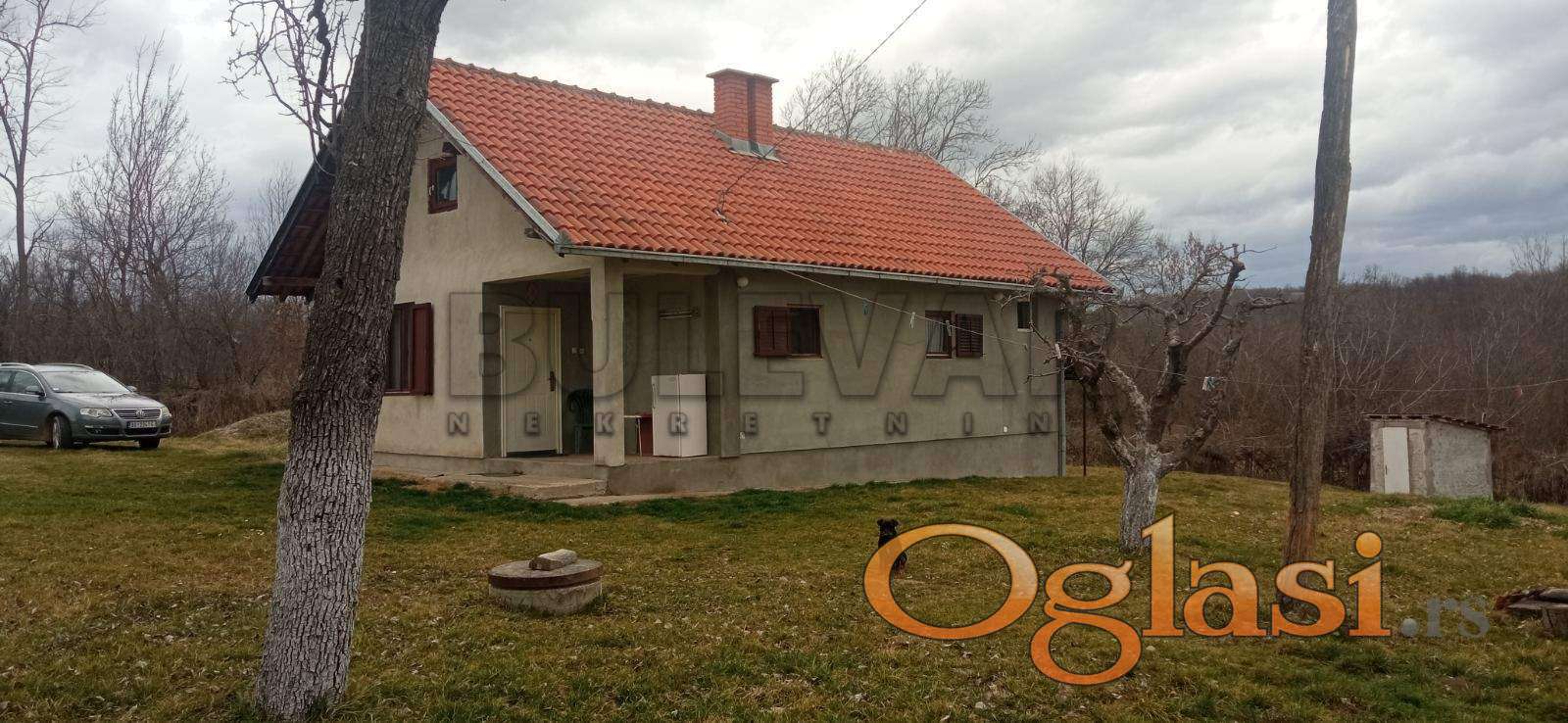 Na prodaju kuća u toponici kod Knića, udaljena od centra sela (škole, ambulante, igrališta, prodavnica, pijace, kafića…) 1,5 km, a 2 km od benzinske pumpe, površine 76 m2 sa imanjem koje čine okućnica površine 2009 m2, te njive, površine 6083 m2 i šuma 1805 m2, koje se nalaze u blizini kuće. Kuća je čvrste gradnje i sastoji se od podruma i sprata. Na spratu od prostorija ima kuhinja, trpezarija, dnevni boravak, kupatilo i dve sobe. Kuća je odmah useljiva. Uz dodatna ulaganja, može se u dodatni stambeni prostor srediti i potkrovlje. Pogodno kako za stalni život tako i za odmor zbog svoje lokacije, ušuškano prelepom prirodom šumadijskog kraja. Za sve informacije i razgledanje stojimo vam na raspolaganju, radnim danima od 09-19h i subotom od 09-17h. Ovu i druge nekretnine sa većim brojem fotografija možete pogledati na našem sajtu: bulevarnekretnine.rs, kontakt: info@bulevarnekretnine.rs, usluga besplatna. Čekamo Vas. Telefon 034/330808 i 060/0544253. Bulevar Nekretnine 034, Kragujevac, broj u registru posrednika: 1278.
