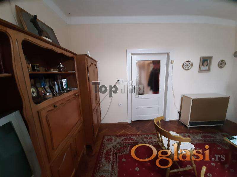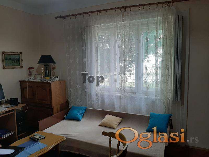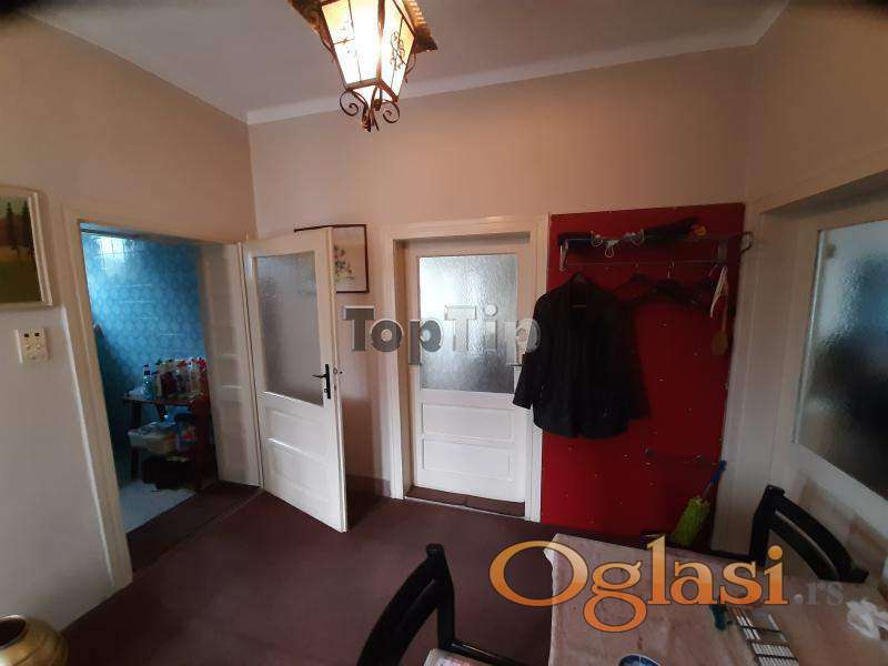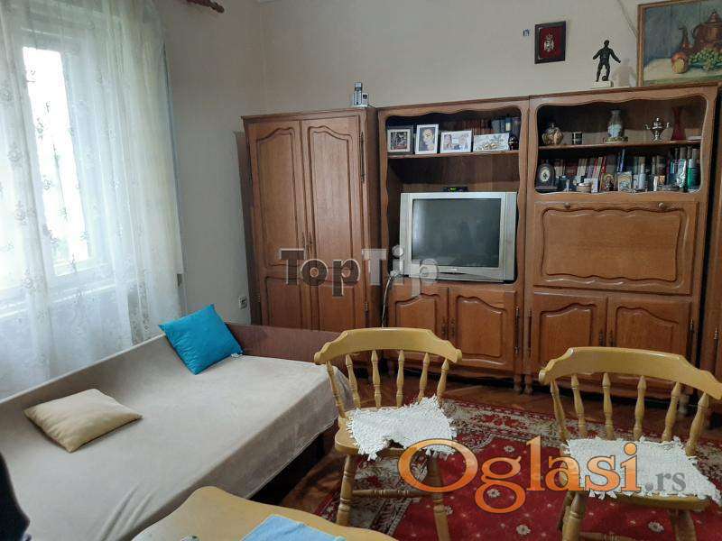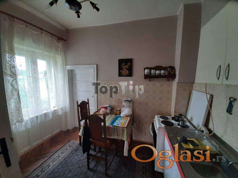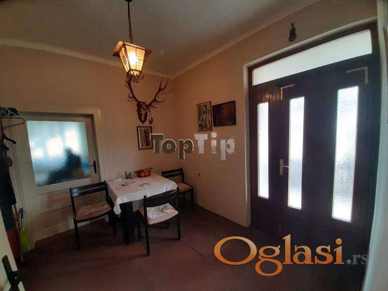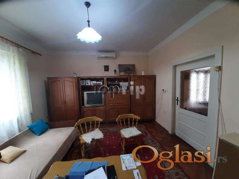 Prodaje se legalizovana trosobna kuća ukupne površine 89 m2 na lepom i prostranom placu površine 665 m2. Kuća je starije gradnje, grejanje je na TA peći i na čvrsto gorivo, podovi su obloženi parketom i keramikom, stolarija je drvena, potrebna je adaptacija. Pored kuće na placu se nalazi i pomoćni objekat 42 m2 i garaža 18 m2, koji su takođe legalizovani. Gradska voda i kanalizacija, trofazna struja.