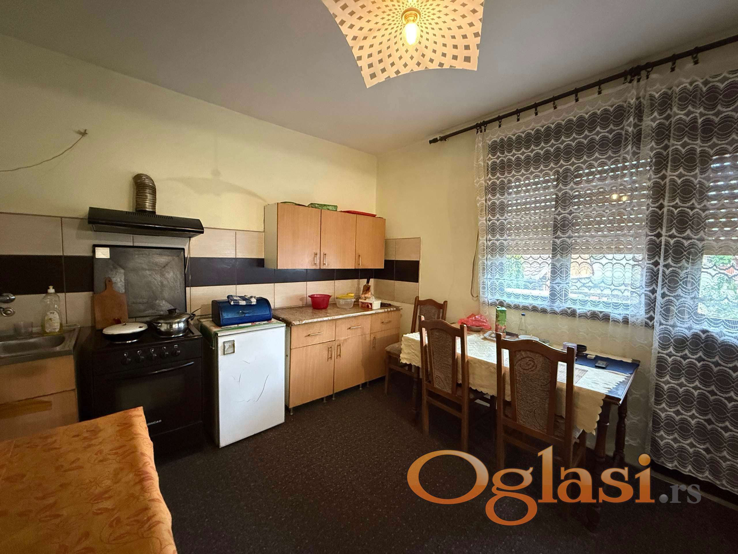 Na prodaju odlična spratna kuća u jednom od najlepših delova Rume. Lokacija odlična - porodično naselje u blizini svih bitnih sadržaja (škole, vrtić, prodavnice, igralište, restorani, frizeri - sve na dohvat ruke, odlična povezanost sa centrom grada). Kuća je spratna, čvrsta gradnja, zahteva određena ulaganja. Drvena stolarija, na podovima kombinacija laminata i etisona. U samom podrumu velika garaža/radionica sa ostavom. U prizemlju dve spavaće sobe, ogroman dnevni boravak sa kuhinjom i trpezarijom koji se moze pregraditi i odvojiti po želji kupca, kupatilo i hodnik. Sprat identičnog rasporeda, u sivom stanju. Iznad se nalazi tavan. Ima ukupno tri terase. Dvorište dovoljno veliko puno zelenila, dosta prostora za parkiranje.