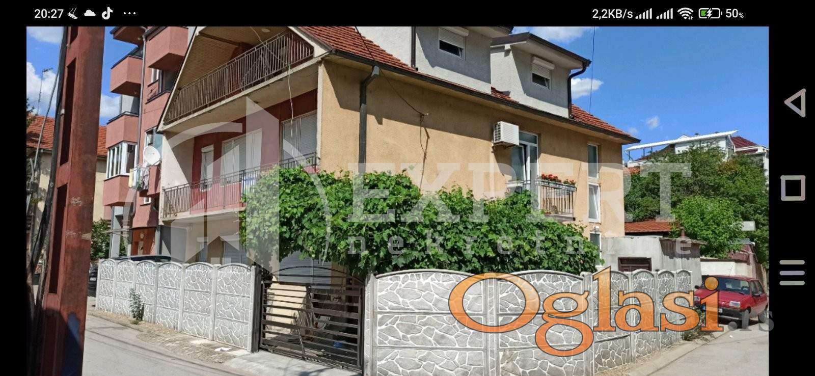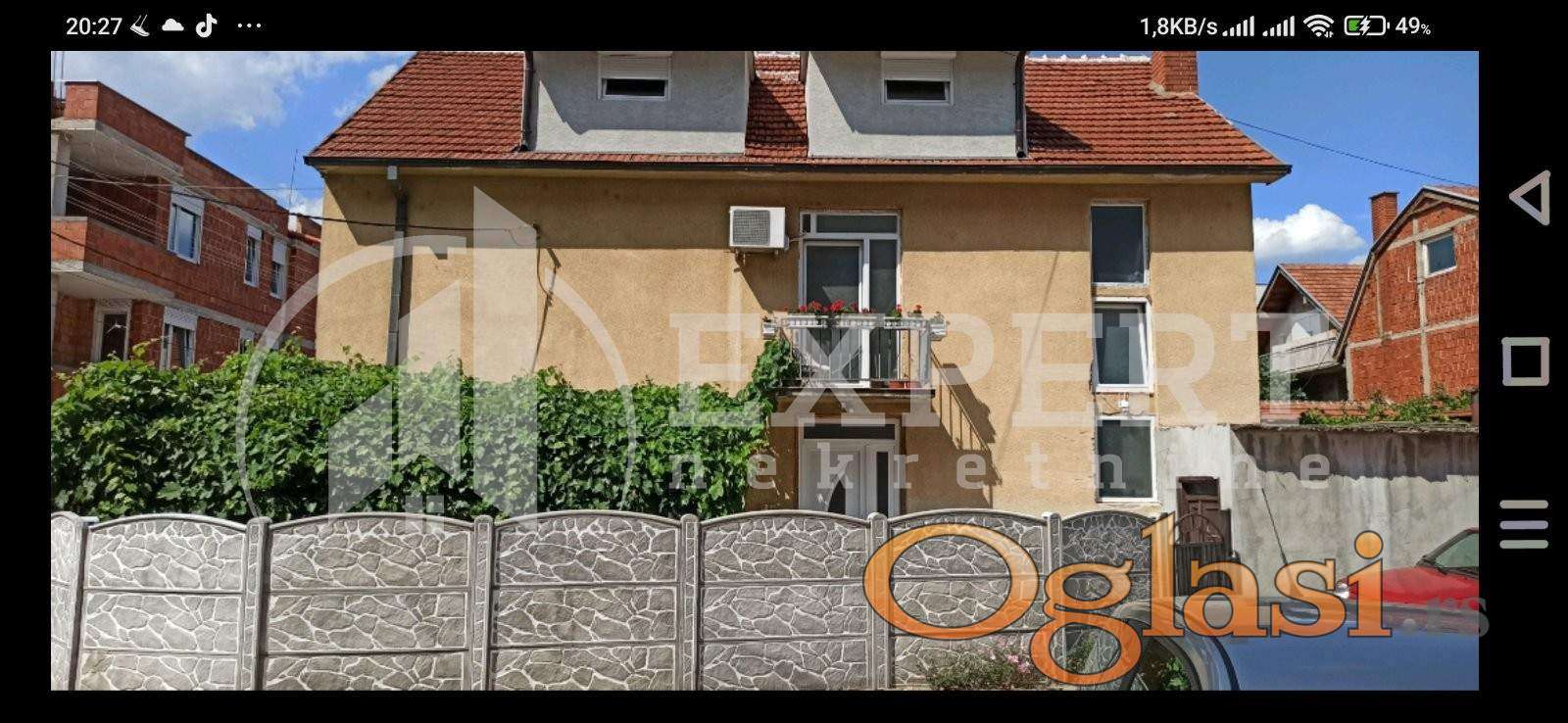 Na prodaju kuca u neposrednoj blizini Durlanske pijace. Kuca je povrsine 100m2 u osnovi, ukupne povrsine oko 300m2. Sastoji se iz prizemlja, sprata I potkrovlja. Prizemlje se sastoji od hodnika, četri sobe I kupatila. Na spratu je slican raspored kao u prizemlju plus terasa. Potkrovlje se sastoji od dnevne sobe sa kuhinjom i trpezarijom, spavaće sobe, kupatila i terase. Kuca je kvalitetne gradnje, nalazi se na placu od 2 ara. Kuća ima dva brojila, trofaznu struju, video nadzor, parno grejanje, klimu Za više informacija javite se. Ovo je samo deo nase ponude, ovo kao I druge nekretnine mozete videti na nasem sajtu.