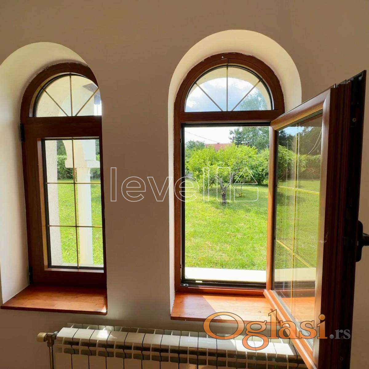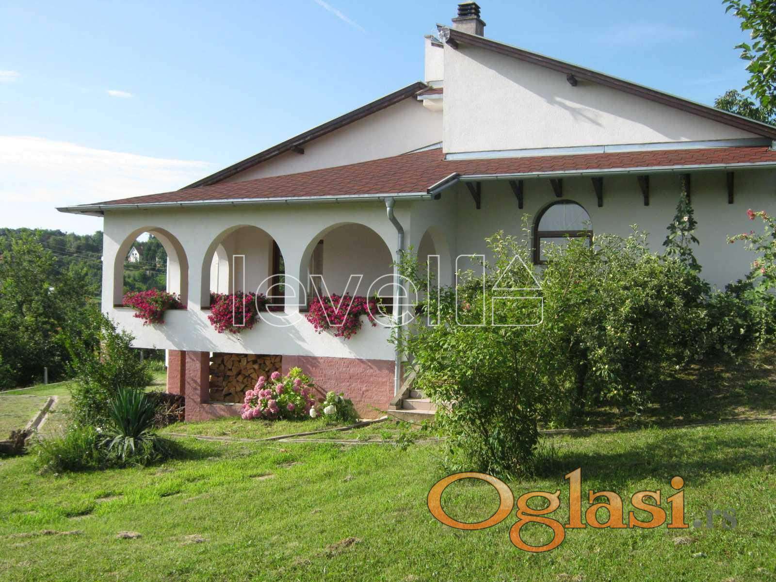LEVEL PROPERTY, agencija za nekretnine Vam predstavlja fantastičnu vilu na svega 6 km od Novog Sada. Vila se nalazi na ogradjenom placu od 3.288 m2, koji pruža potpunu privatnost kao i maksimalan komfor za uživanje. Vila je sagrađena 2012 po posebnom projektu profesionalnog arhitrekte, od kvalitetnih materijala, sa odličnom termo, hidro i zvučnom izolacijom. Vila poseduje dve velike prelepe natkrivene terase (20 i 25m2).Terasa na severnoj strani u stilu italjanskih palazzo pruža divan pogled na grad i tvrdjavu. Prizemlje kuće se sastoji od velikog dnevnog boravka, kuhinje i trpezarije sa izlazom na južnu terasu i tri komforne spavaće sobe, kupatila i posebnog toaleta. U suterenskom delu vile se nalazi velika prirodno osvetljena prostorija za više namena. Poseduje sopstveni toalet i stepenice u prizemni deo kuće. Garaža sa automatskim vratima.Na ulazu u dvorište je velika automatska metalna kapija i parking na 2 automobila. Plac je podeljen na nekoliko nivoa sa betonskim potpornim zidom, sa sistemom za odvod atmosfernih voda. Grejanje je etažno,kombinovano, može i na gas i na drva.