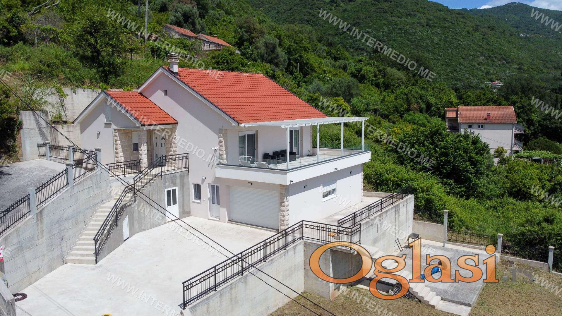 U ponudi je novoizgrađena kuća smještena u naselju Zelenika, udaljena svega 2 km od glavnog magistralnog puta, u mirnom i prijatnom okruženju idealnom za porodični život ili odmor.