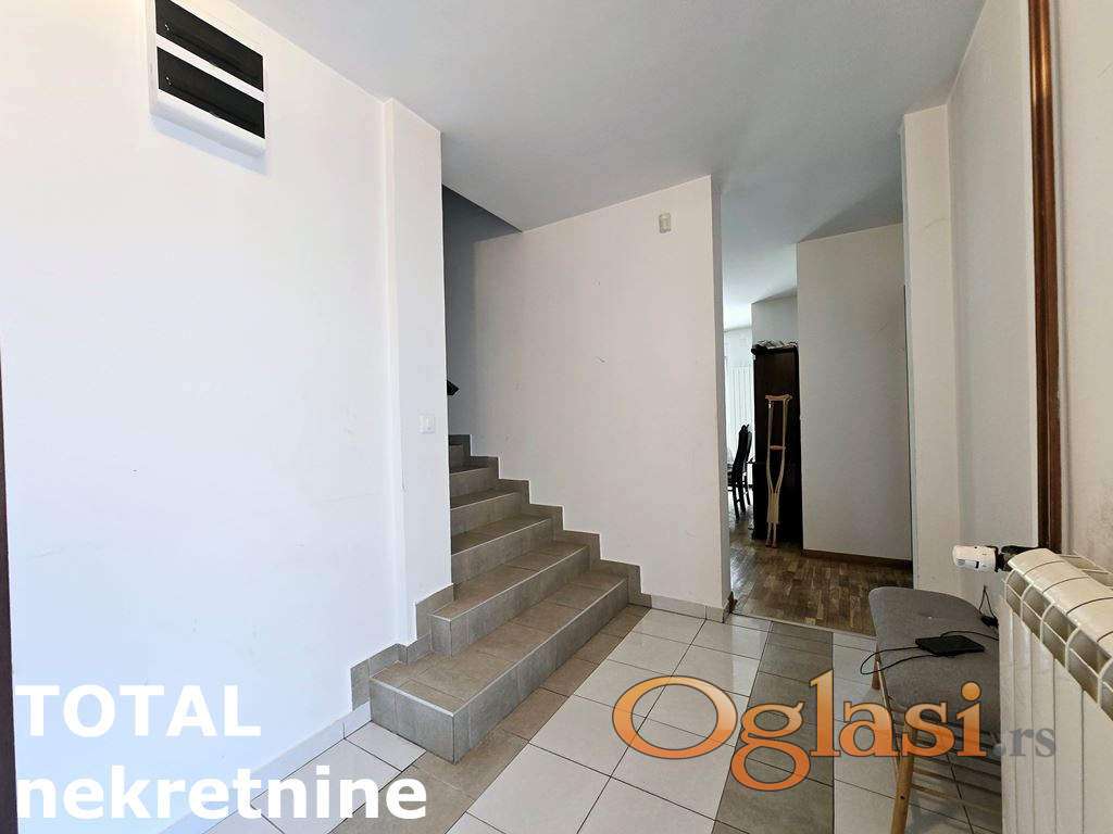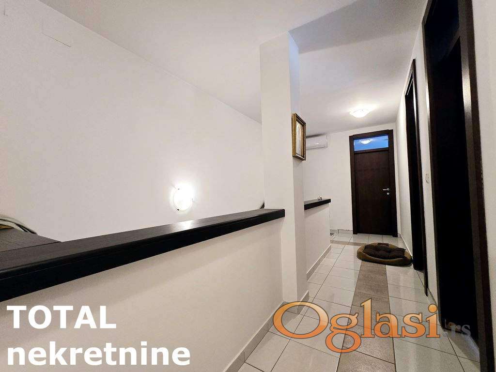U prvoj etaži se nalazi prostor za vežbanje koji bi mogao da bude letnja kuhija, kupatilo, kotlarnica i ostava, u prizemlju je veliki i veoma svetao dnevni boravak koji izlazi na terasu okrenutu ka jugu, soba, kuhinja i kupatilo a na spratu se nalazi čak 5 soba, kupatilo i balkon - ukupno 269 m2. Postoji mogućnost formiranja dve stambene jedinice sa zasebnim ulazima, nadogradnje još jednog sprata i ugradnje bazena u koji bi se ulazilo sa terase.