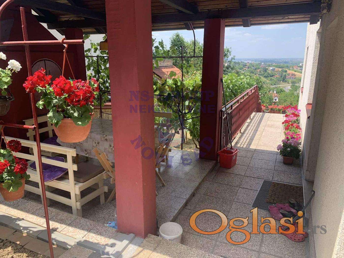 Fantastična, spratna kuća, bez ikakvih ulaganja. Nalazi se na lepom delu Sremske Kamenice, okružena prirodom, čije zelenilo pruža zaista prelep raj za mir i odmor. Ono što je posebno krasi je njen pogled na Dunav i ceo grad. Na prizemlju kuće se nalazi: dnevni boravak sa kuhinjom i trpezarijom, spavaća soba. kupatilo, ostava. Sprat se sastoji od: dnevnog boravka, dve spavaće sobe i kupatilo. Ono što je najbitnije jeste da obe etaže izlaze na terase čiji je pogled neverovatan. Za više informacija, pozovite!