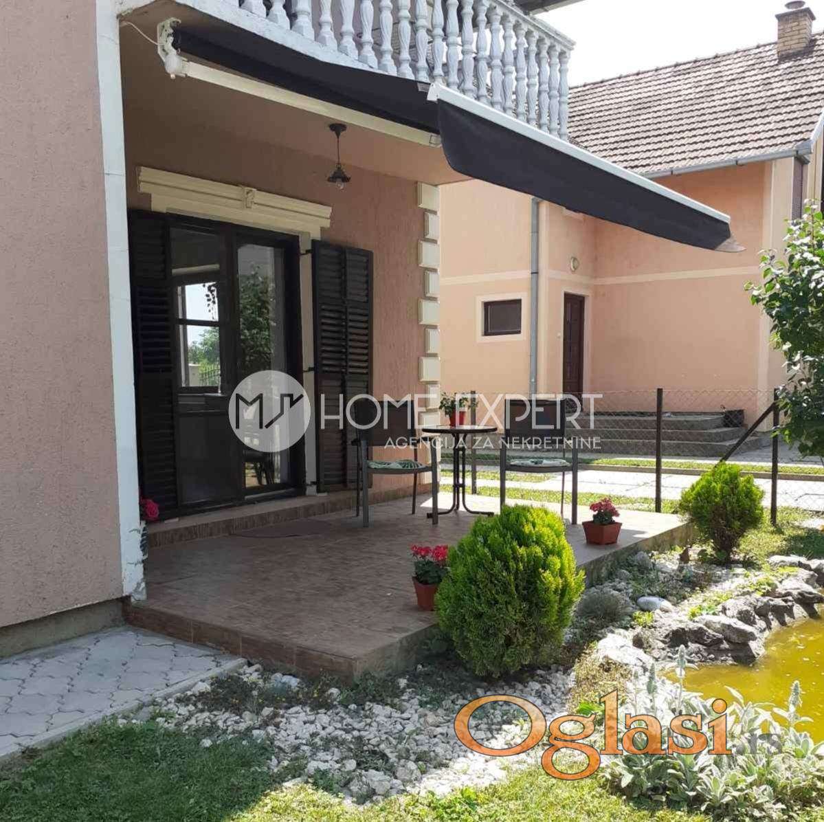 Prodaje se odlična spratna, porodična kuća u Veterniku.Kuća je na placu od 673m2 i uknjižena na 158m2 u osnovi i sa pomoćnim objektom od 58m2 koji je takođe uknjižen. Kuća se prodaje kompletno nameštena, Na donjoj etaži se nalazi spavaća soba sa izlazom na terasu, velika dnevna soba sa velikom trpezarijom i odvojenom kuhinjom, kupatilo, hodnik i ostava. Iz trpezarije se izlazi na veliku terasu. Gornja etaža ima dve spavaće sobe, dnevnu sobu i odvojenu trpezariju sa moderno opremljenom kuhinjom, kupatilo, hodnik i terasu. Veoma je kvalitetno građena (sedndvič zidovi 50cm) i okružena zelenilom i negovanim vrtom sa fontanom. U dvorištu postoji roštilj sa sačom. Pomoćni objekat čini letnja kuhinja sa toaletom,ostava i velika garaža. Poseduje i bunar u dvorištu koji služi za zalivanje Kuća je locirana u novom delu Veternika, u blizini Crkve i kružnog toka i do centra Novog Sada se stiže za 10 minuta Veoma dobra lokacija za miran život, a opet u blizini svih potrebnih sadržaja. Za više informacija pozvati na 0601313137 - Šifra nekretnine: 3000069