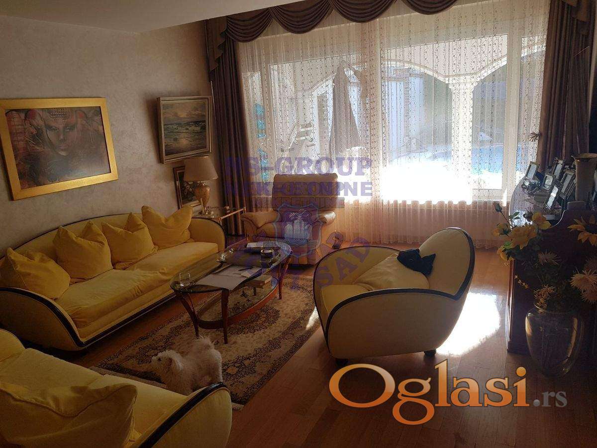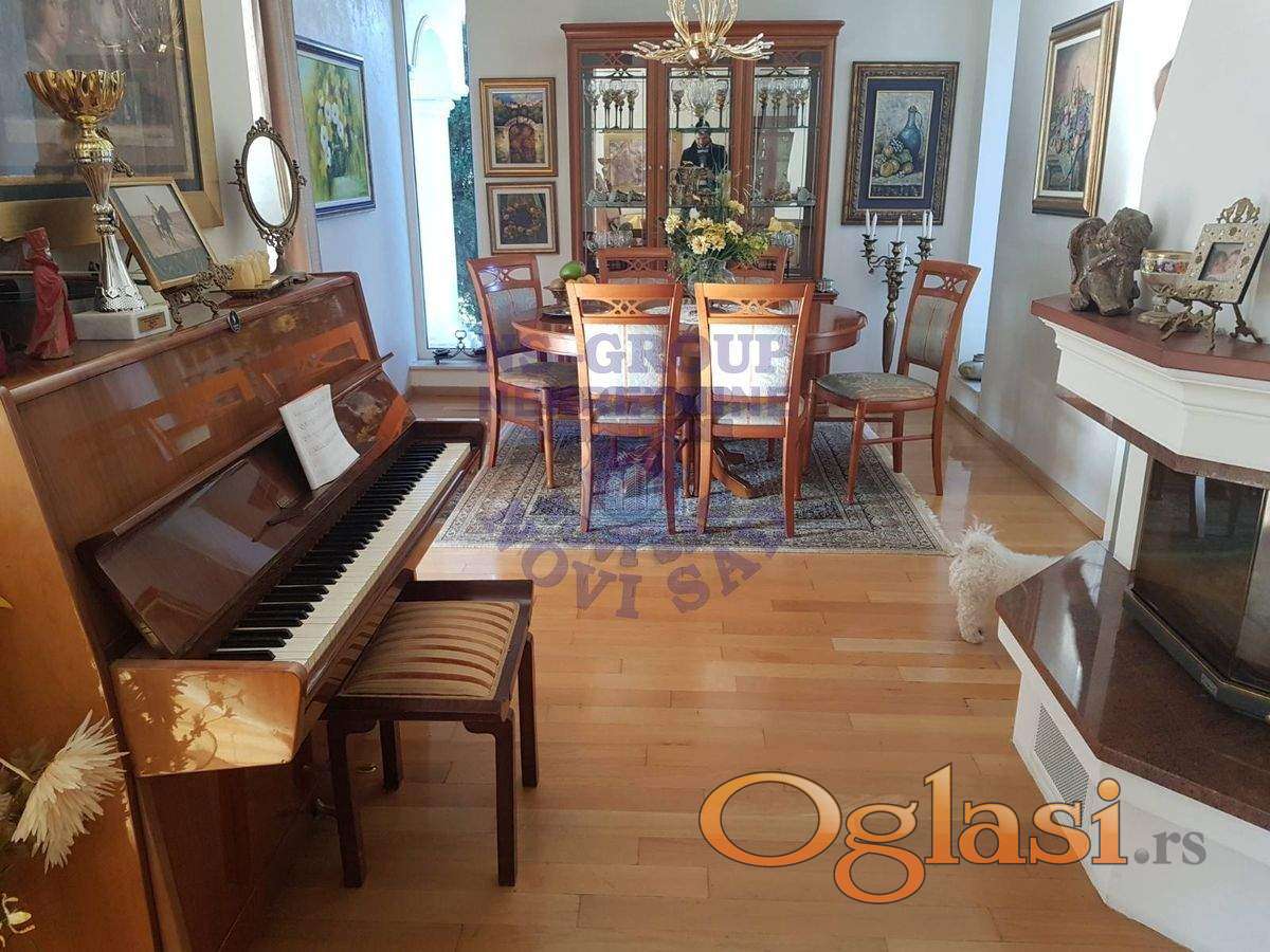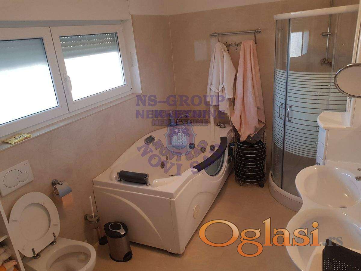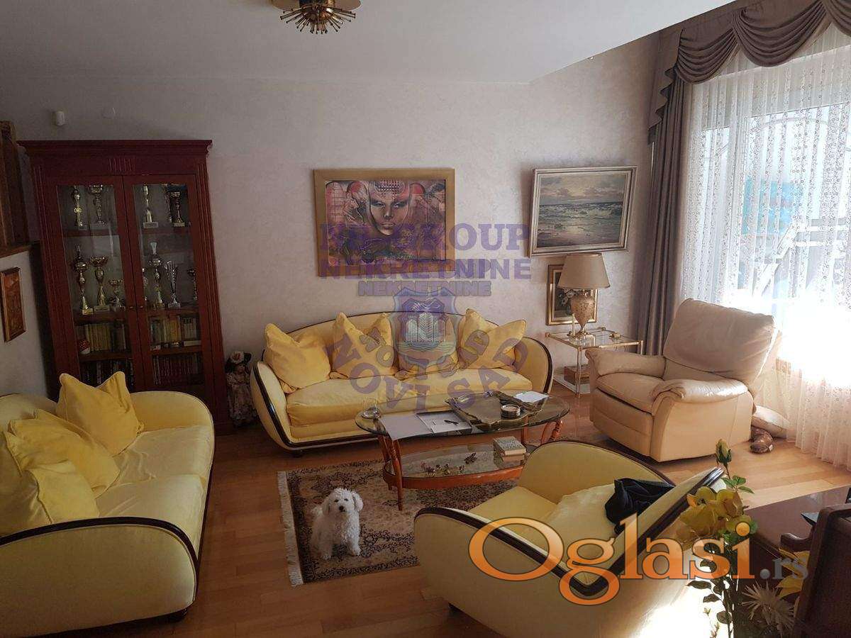Fantastična kuća u mirnom delu elitnog naselja! Izdvojeni od gradske buke, a na samo par minuta vožnje do centra grada, u ovom prostoru ćete naći mir, udobnost i sav komfor porodičnog stanovanja. Novija kuća, kvalitetno građena i opremljena vrhunskim materijalima. Krunu ove kuće čini prostran dnevni boravak sa pogledom na prelepo uređeno dvorište sa bazenom, koje je prava oaza mira. Na donjoj etaži master soba sa kupatilom, na spratu se nalaze tri spavaće sobe, a u samom potrkovlju odličan prostor - soba i radni deo, koja je dodatnih cca 80m2 na knjižnu kvadraturu. Za svaku preporuku! 064 8222 148