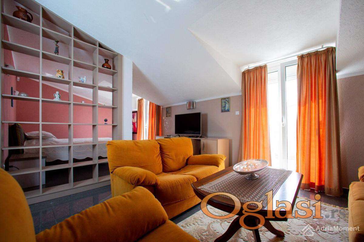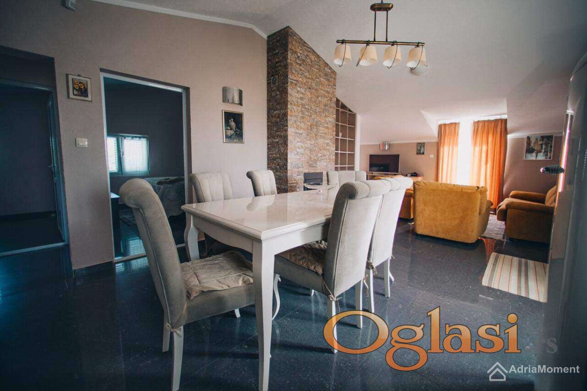 Kuća je na 3 sprata. Sastoji se od 5 stanova. Pogled na planine i dijelom na more