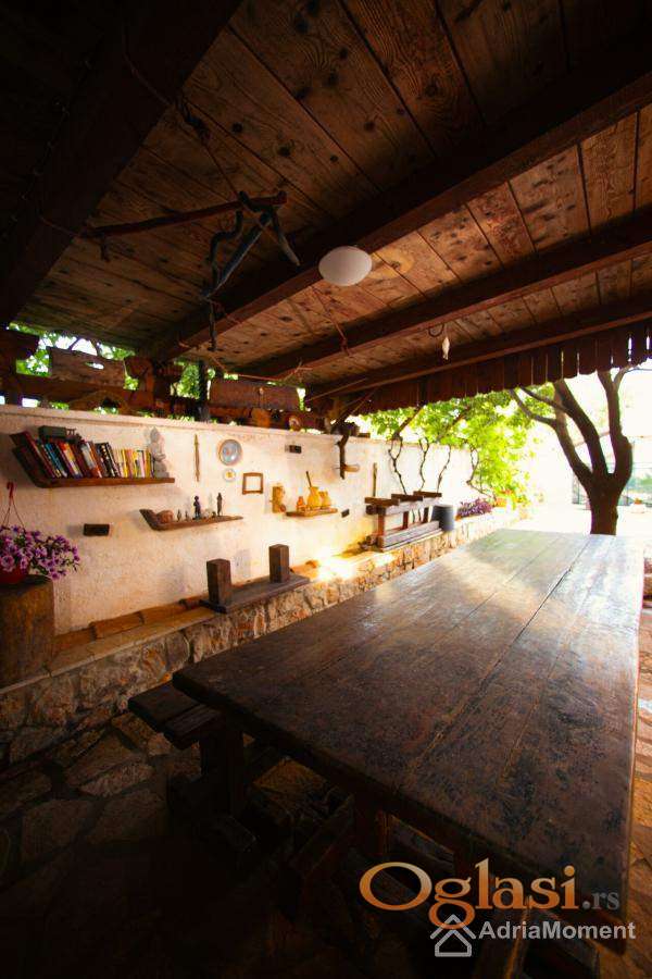 Dvorište je popločano prirodnim kamenom u rustikalnom stilu. Na parceli se nalazi mnogo voćaka i ukrasnog drveća i biljaka, posebno agruma, maslina, grožđa, palmi, ruža itd.