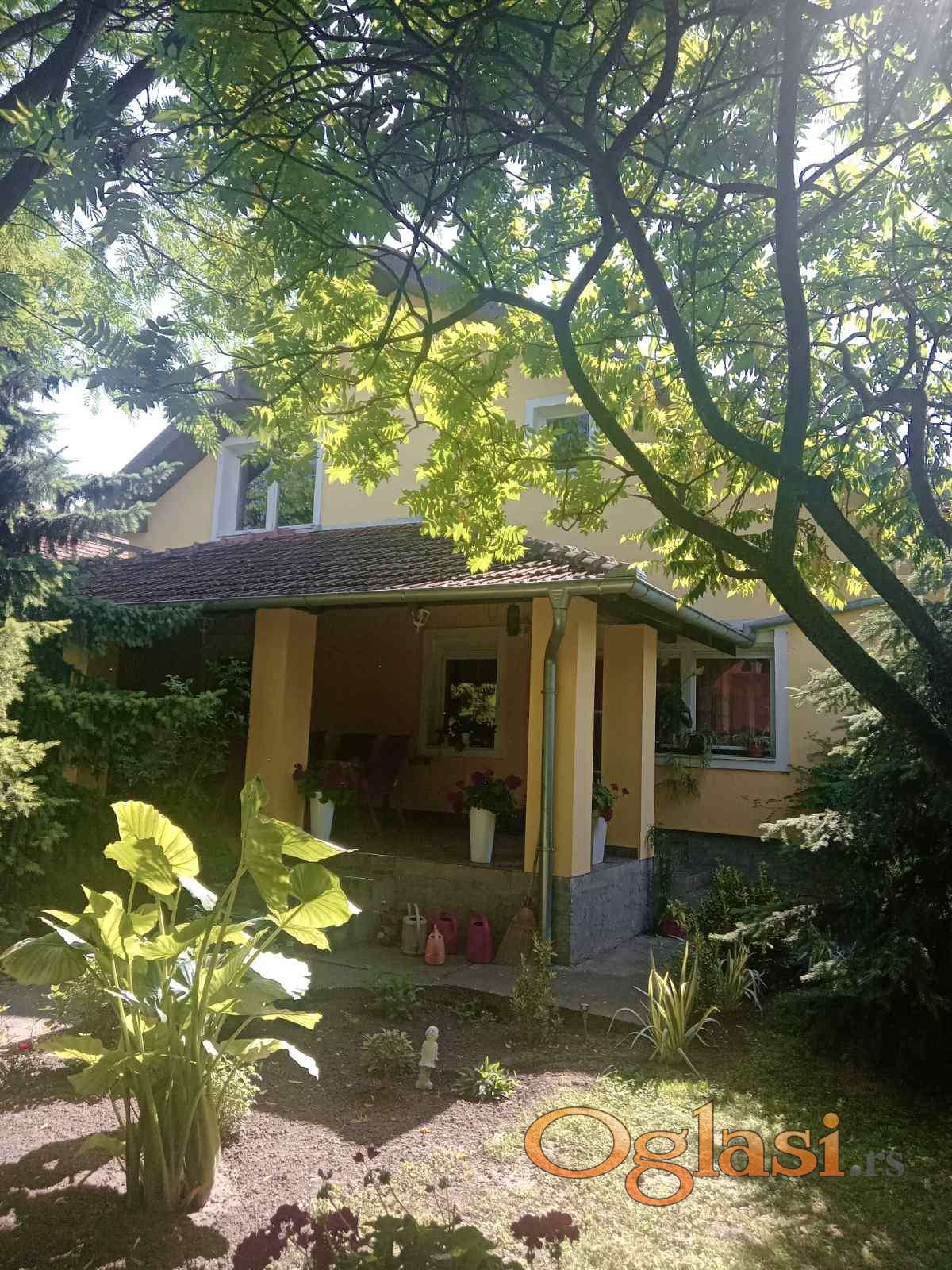 Prodajem noviju kuću sa potkrovljem za 125000 eura u Somboru (MZ Gornja Varoš). Kuća je izgrađena na oko 4 ara placa. Prizemlje kuće obuhvata dve spavaće sobe, kuhinju, veliki dnevni boravak sa trpezarijom, hodnik, kupatilo, ostavu i terasu (144 m2 kuće u prizemlju + 30 m2 terase u prizemlju). Potkrovlje sadrži dve sobe, hodnik, terasu, kupatilo i tavan u sivoj fazi sa izvedenim instalacijama, kanalizacijom, vodom, strujom i priključcima za grejanje (50 m2 obuhvataju dve sobe, hodnik i kupatilo bez tavana; 3 m2 terasa). Kuća podesuje podrum, koji sadrži dve prostorije, hodnik i ostavu (50m2) sa sprovedeno strujom i vodom. Kuća je povezan na gradki vodovodni sistem, kanalizacioni sistem, trofaznu struju i centralno grejanje na čvrsto gorivo. Građena je od duplih "sendvič" zidova od cigle sa punjenjem od staklene vune i spoljnjom izolacijom od stiropora.