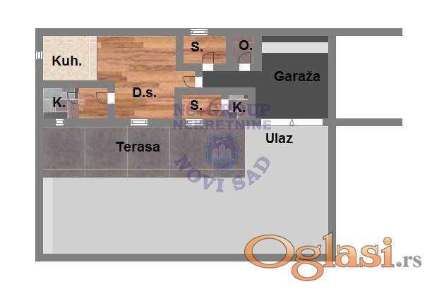 Kuća novije gradnje na uzdignutom delu naselja. Blizina crkve, sportskog centra Slana bara te novog Sentandrejskog bulevara. Bez ulaganja i useljiva po isplati. Dva kupatila, poslovna prostorija i lep stambeni prostor. Ima i ekonomski deo dvorišta koji je pogodan za uzgoj kućnih ljubimaca. Na placu se nalazi razno voće. Sve liči na lep, urbani salaš. Ukupna površina placa je 1550 m2.(36m uličnog frota x 43,5 m dubine,). Sve ograđeno i ulaz na jednu kapiju. Asfeltni prilaz na posed. Interesantno za investitore jer je indeks zauzetosti 40%,a izgrađenosti 1,20. Dozvoljeno izgraditi 1480 m2 i to P+1-PK uz mogućnost suterena.(Može više manjih objekata, dvojnih kuća slepljene). Može se graditi hala (600-700m2) ili magacinski prostor. Ishodovane informacije o lokaciji od strane javnog preduzeća zavoda za Urbanizam Novi Sad - suprastruktura. Plac izlazi na dve ulice, dvostrano orijentisan.