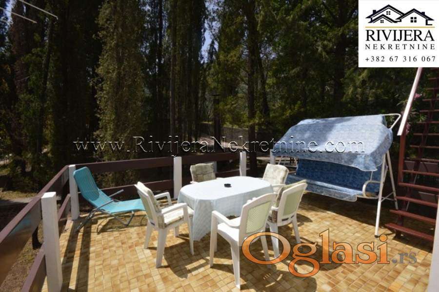 Porodicna kuca za odmor Herceg Novi Sutorina. Kuca smjestena u fantasticnom okruzenju, okruzena sumom i borovima. Udaljenost od Herceg Novog 10 km, 30 km od Dubrovnika. Kuca se sastoji od dva nezavisna dvosobna stana, ukupne povrsine 155 m2 kao i lijepog kultivisanog dvorista od 464 m2. Lokacija izuzetno lijepa za odmor i uzivanje. Cijena : 230.000 eura, dogovor. Parking za vise vozila. Kuca se prodaje opremljena.