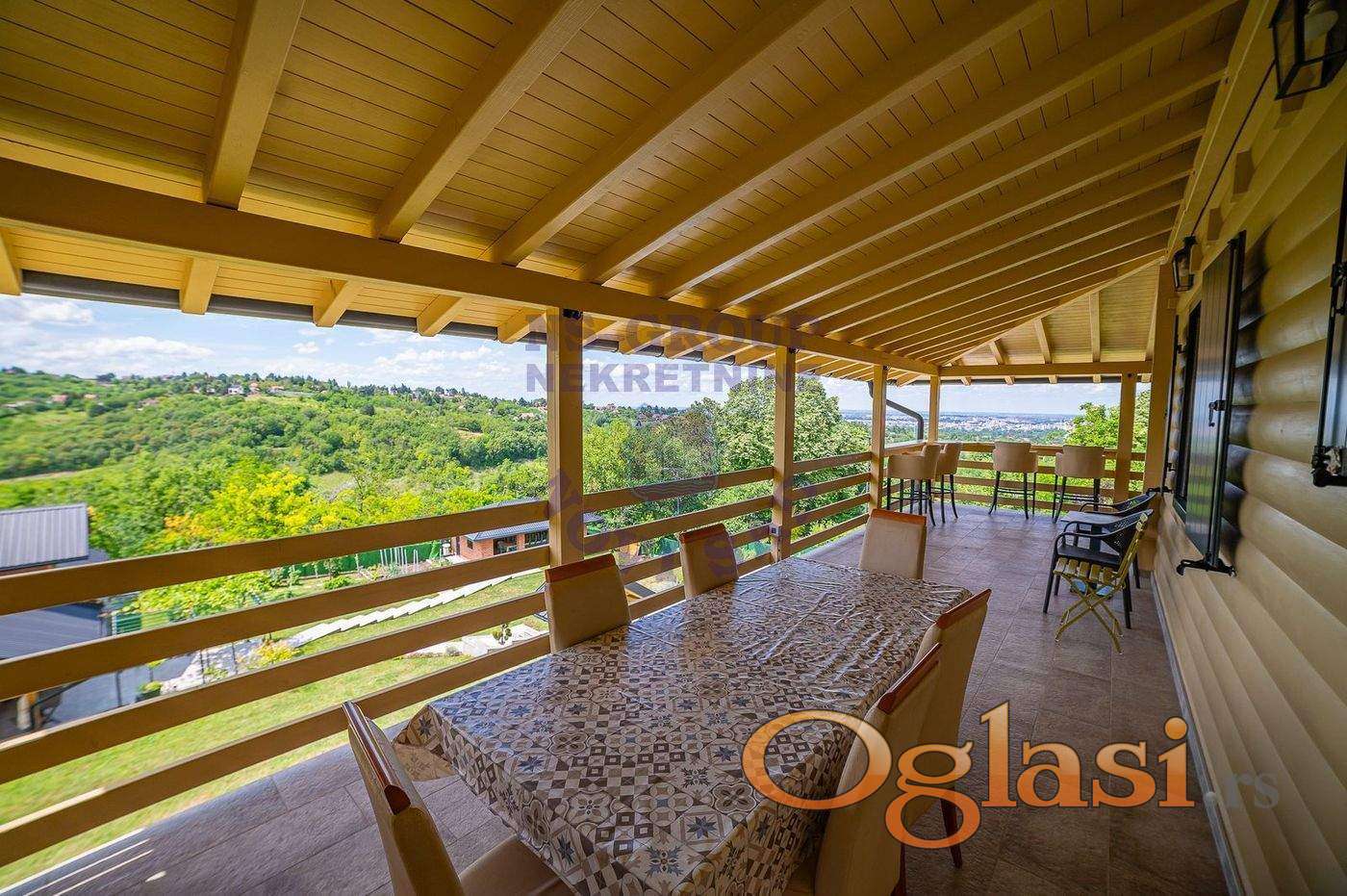Ova luksuzna kuća na Popovici nudi savršen spoj komfora i elegancije, idealna je za one koji traže mir i privatnost, a istovremeno žele biti blizu grada. Smeštena na prostranom imanju, kuća se ističe modernim dizajnom i pažljivo odabranim detaljima. Unutrašnjost je prostrana i svetla, sa velikim staklenim površinama koje omogućavaju neometan pogled na grad. Svaka soba je opremljena najkvalitetnijim materijalima i luksuznim nameštajem, pružajući osećaj raskoši i udobnosti. Eksterijer kuće je jednako impresivan. Veliki bazen poziva na opuštanje i uživanje tokom toplih dana, dok je savremeno opremljena letnja kuhinja sa roštiljem savršena za druženja i pripremu obroka na otvorenom. Pomoćni objekti, kao što su gostinska kuća i prostor za rekreaciju, pružaju dodatnu udobnost i funkcionalnost. Uz sve to, kuća nudi spektakularan pogled na grad, koji se posebno ističe u večernjim satima kada svetla grada stvaraju magičnu atmosferu. Ova nekretnina na Popovici je pravo utočište za one koji traže luksuz, privatnost i blizinu svih gradskih sadržaja. m1