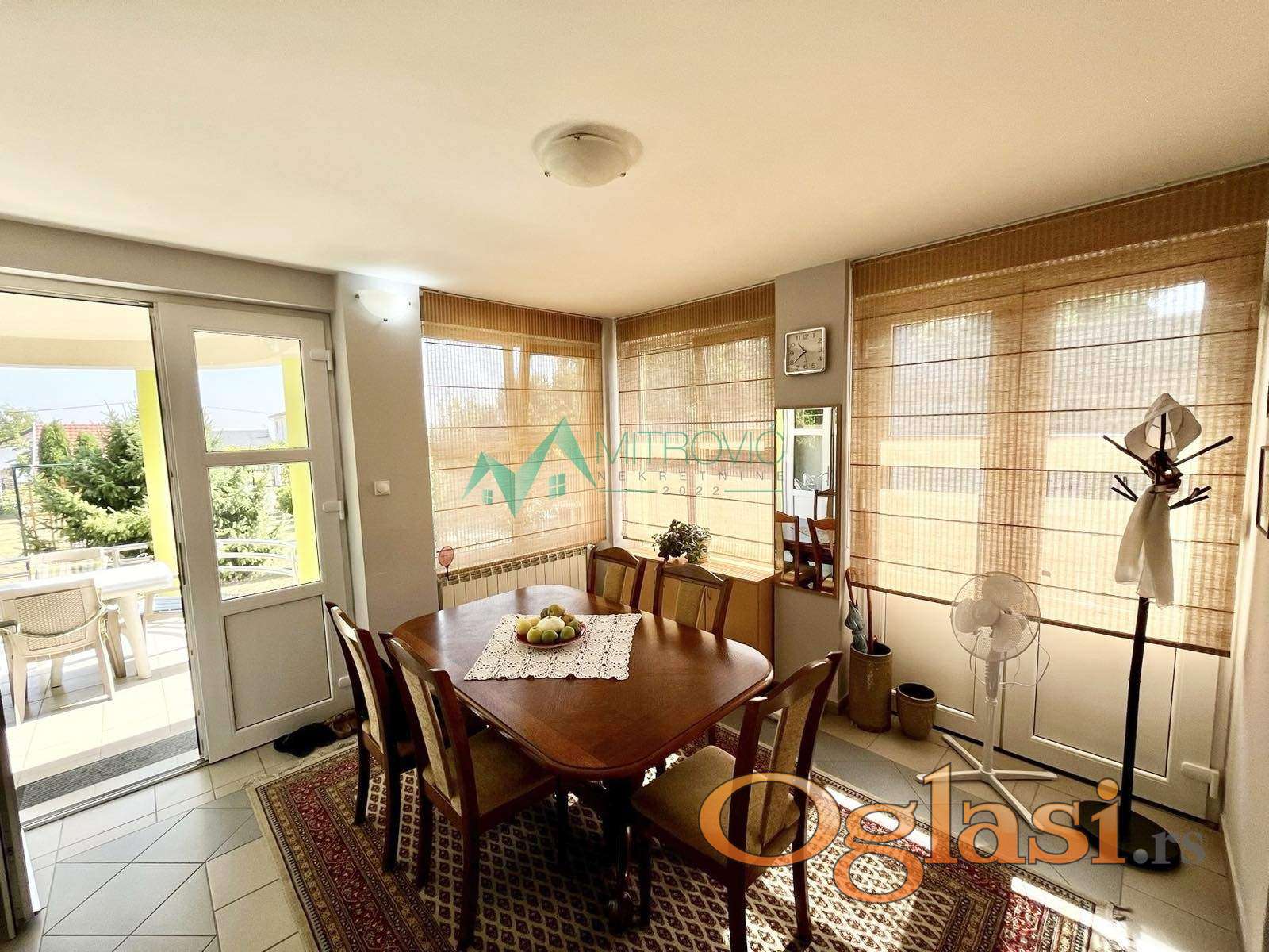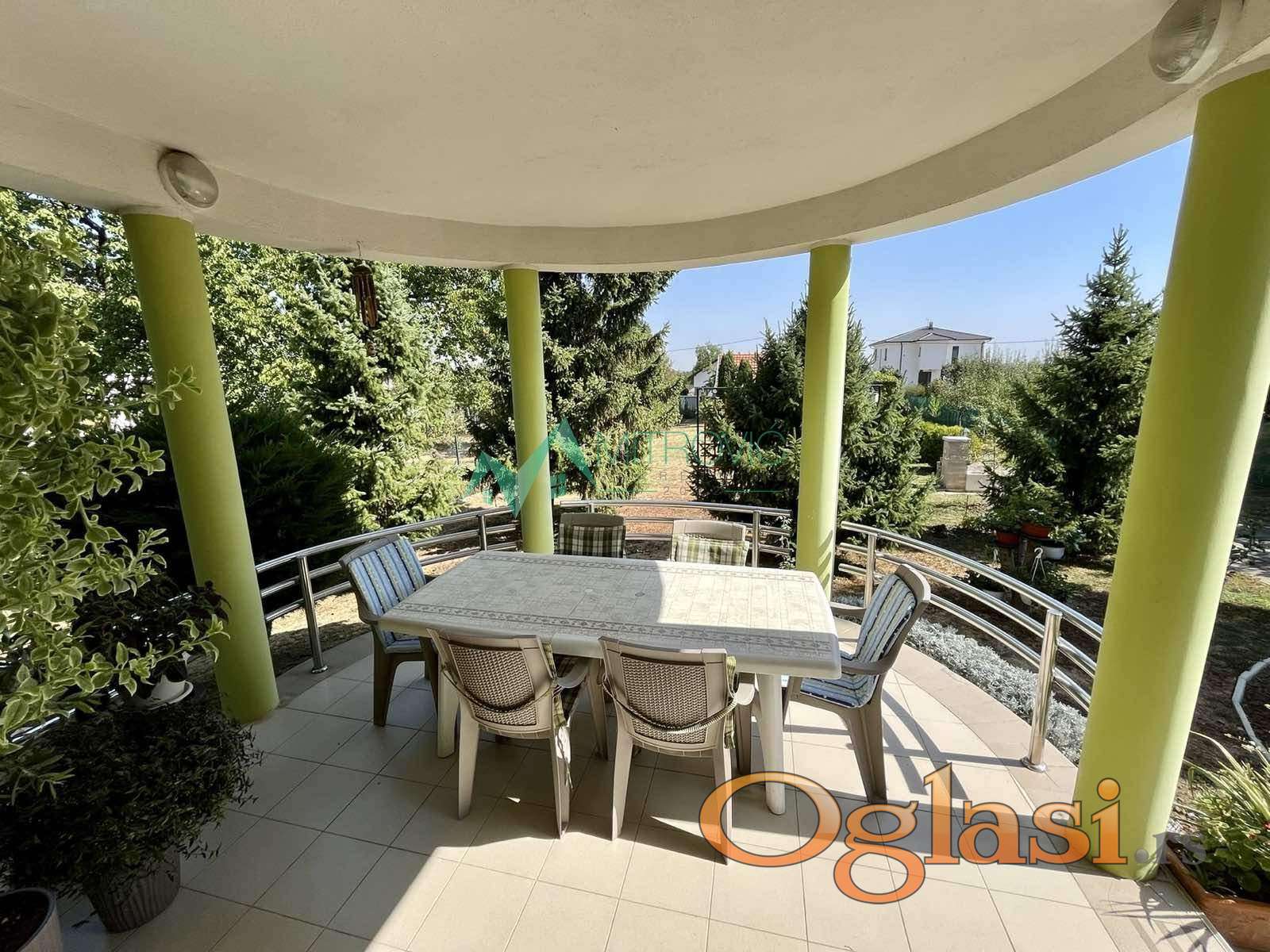 Na placu od 991m2 nalaze se garaža za dva automobila i dovoljno prostora za odlaganje, bazen dimenzija 7,5x3,5m i dubine 1.5m sa sistemom za zagrevanje, kao i prostrano dvorište sa dva vinograda koje nudi pravi raj za vašu porodicu. Zelenilo je pažljivo uređeno, sa travnjakom koji mami na igranje, i drvećem koje pruža prirodnu senku. Ovdje ćete uživati u prijatnim večerima uz bazen, koji je savršeno mesto za opuštanje tokom letnjih dana. Pored bazena, nalazi se prostor za roštiljanje i vanjski trpezarijski set, idealan za porodično okupljanje i stvaranje nezaboravnih uspomena.