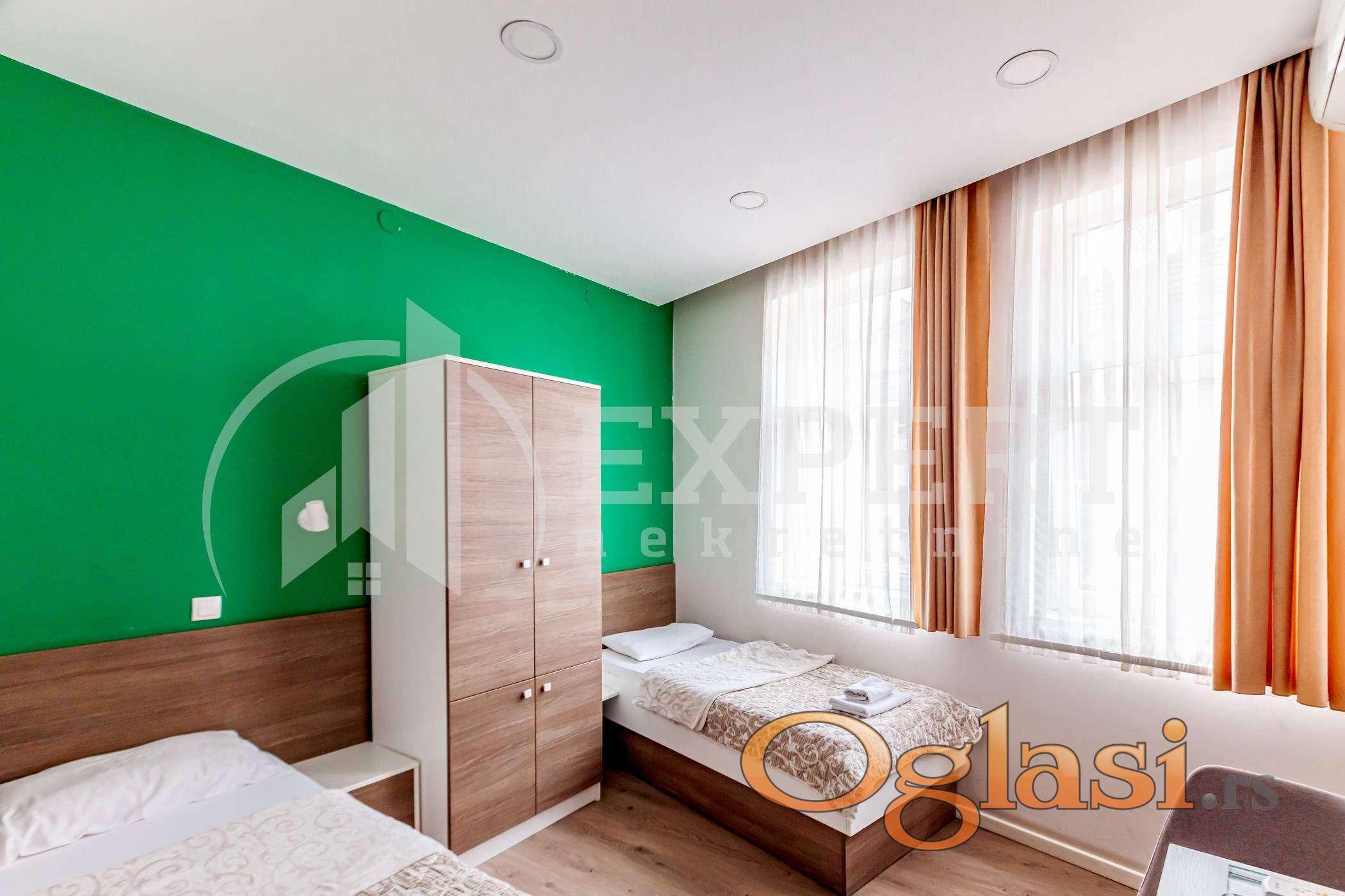 Na prodaju stambeno poslovni objekat u blizini Pravnog fakulteta, 150m2, na placu od 2,12 ari. Objekat se sastoji od sedam soba, maksimalnog kapaciteta 20 osoba. Sobe su po strukturi dvokrevetne, trokrevetne i četvorokrevetne. Svaka soba poseduje kupatilo, klima uređaj, mini frižider, led tv, kuvalo i propratno posuđe. Objekat ima zajedničku perionicu i trpezariju sa kuhinjom. U potpunosti je opremljen i pogodan je kako za život u delu objekta, tako i za izdavanje. Nalazi se u mirnoj ulici, u neposrednoj blizini centralne gradske zone, Pravnog i Ekonomskog fakulteta, FZNR-a, DIF-a. Objekat je u radu, sa ocenom na Bookingu 9.3. Zbog svoje lokacije, pogodan je za privatni studentski ili učenički dom, predstavništvo firmi, hostel. Uknjižen je, vlasništvo 1 kroz 1, moguća kupovina putem stambenog kredita. Ovo je samo deo naše ponude, za više informacija, stojimo vam na raspolaganju.