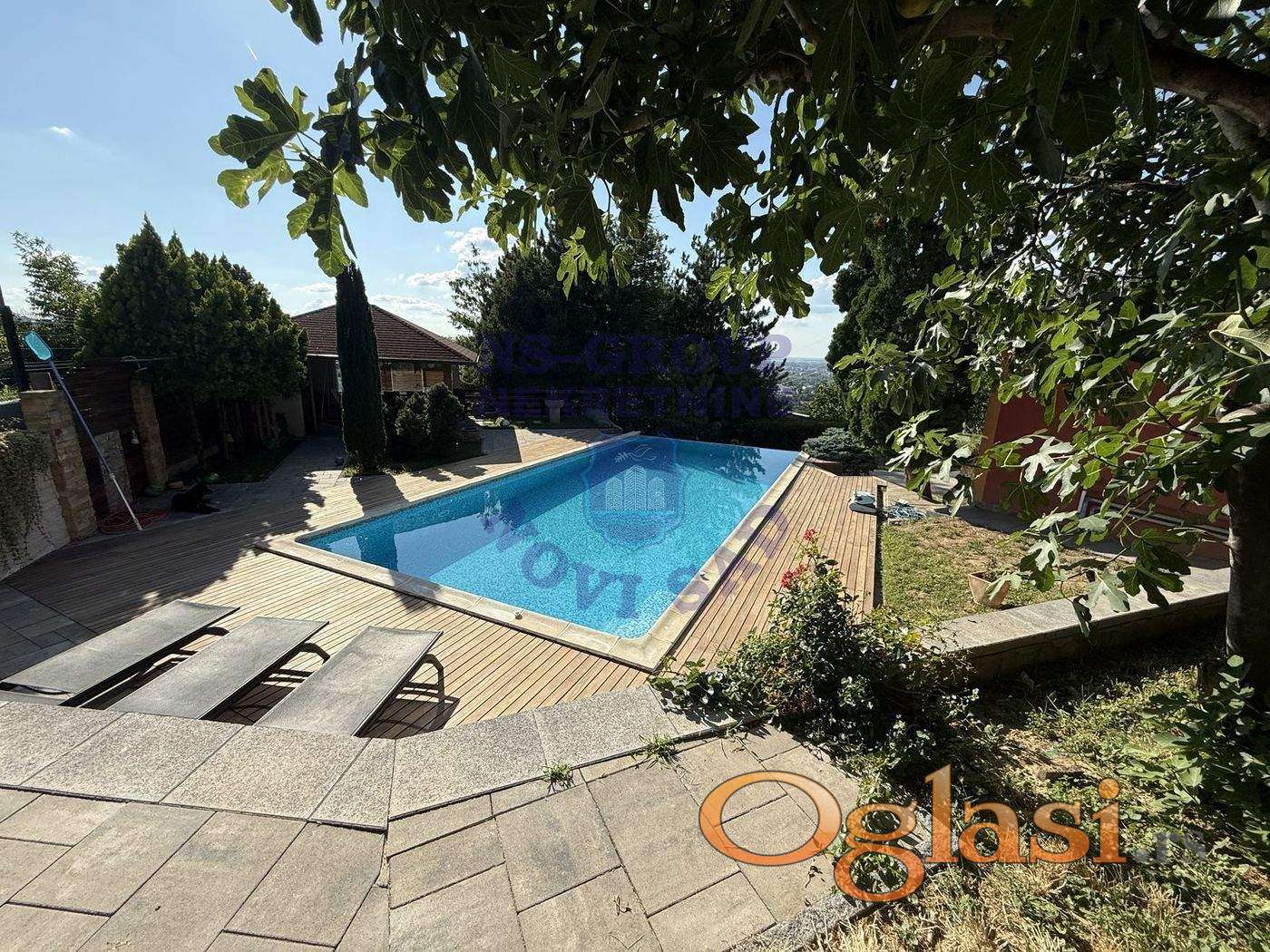 Želite jednu od najboljih parcela na Čardaku sa pogledom na Novi Sad, Dunav, Frušku Goru - na sve što može da se vidi iz drona, imate na ovoj parceli ! Front do ulice cca 40m, sređen pod dosta starim drvećem i krošnjama, borovima. Kuća se sastoji od podruma, prizemlja - dn.boravak sa visokim tavanicama u portalima, kuh sa trpezarijom i sanitarnog čvora. Na spratu i pk su po dve sp.sobe sa kupatilom (4. sp sobe). Iz svih prostorija "puca" pogled preko borova i drveća. Ispred kuće bazen sa ležaljkama, letnjikovac, takođe postoji i barutana, koja može biti vinski podrum. Asfaltni put do kuće, parking za više vozila je urađen i ispred, od centra grada vozilom 15tak min preko mosta Slobode. Jedna zaista retka ponuda, gde je plac u donjem delu pod blagim nagibom-skoro neprimetnim, dok je sve ostalo poprilično ravno.
