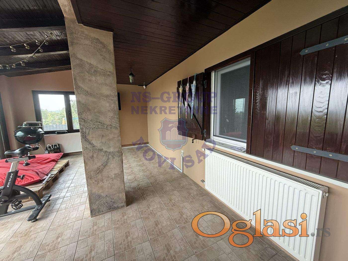 Na granici sa Nacionalnim parkom Fruška gora, gde su mir, zelenilo i tišina zagarantovani, se nalazi ova vikend kuća sa pogledom na celu Vojvodinu,grad, Dunav, tvrđavu. Plac je fantastičan, kolski ulaz direktno sa asfaltiranog glavnog puta, a kuća je "spuštena" na padine Fruške gore - dovoljno udaljena od glavnog puta. Urađena je kao vikend kuća za odmor sa velikim tremom sa kojeg "puca" pogled. Okolo je zelenilo, ali i sve je podređeno privatnosti svake kuće ponaosob. Plac je kaskadni,na gornjem delu je objekat, donja dva nivoa stepeništem povezani sa gornjim..mogućnost pravljenja bazena, terena za sport idr ...
