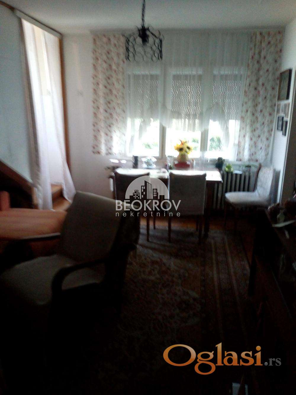 Sastoji se od prizemlja, u kome su predsoblje, toalet, dnevna soba, kuhinja, soba, terasa, garaža i kotlarnica; sprata, u kojem su dnevna soba, 2 spavaće sobe, kupatilo i terasa. Ima podrum i veliko dvorište. Blizu je gradskog prevoza, Ibarske magistrale, prodavnice... Kupac plaća proviziju u iznosu u visini od dva posto cene. 069 BEOKROV