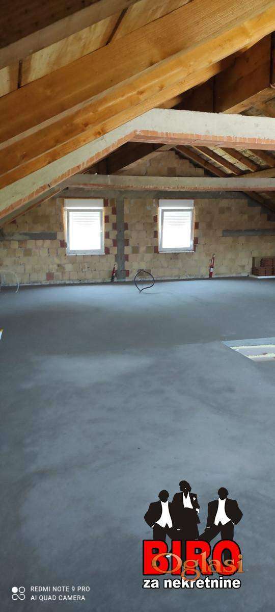 Kuća odličnog rasporeda. Hodnik iz kog ulazi u svaku od prostorija. Komforan i svetao dnevni boravak iz kog se ulazi u kuhinju koja poseduje ostavu i prirodnu ventilaciju. Dve komforne spavaće sobe. Kupatilo sa prirodnom ventilacijom. Tavanski prostor koji budućem vlasniku ostavlja mogućnost "pravljenja" još jedne etaže.