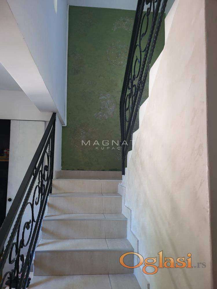 Kuća ima 395m2 i 5,72 ari placa. Sastoji se od 4 zasebne jedinice sa zasebnim ulazima, jedan stan od 114m2, drugi 110m2 i dve garsonjere. Poseduje tavanski prostor koji može malo da se podigne i napravi još jedan veliki stan. Ima garažu, kotlarnicu i vešernicu.