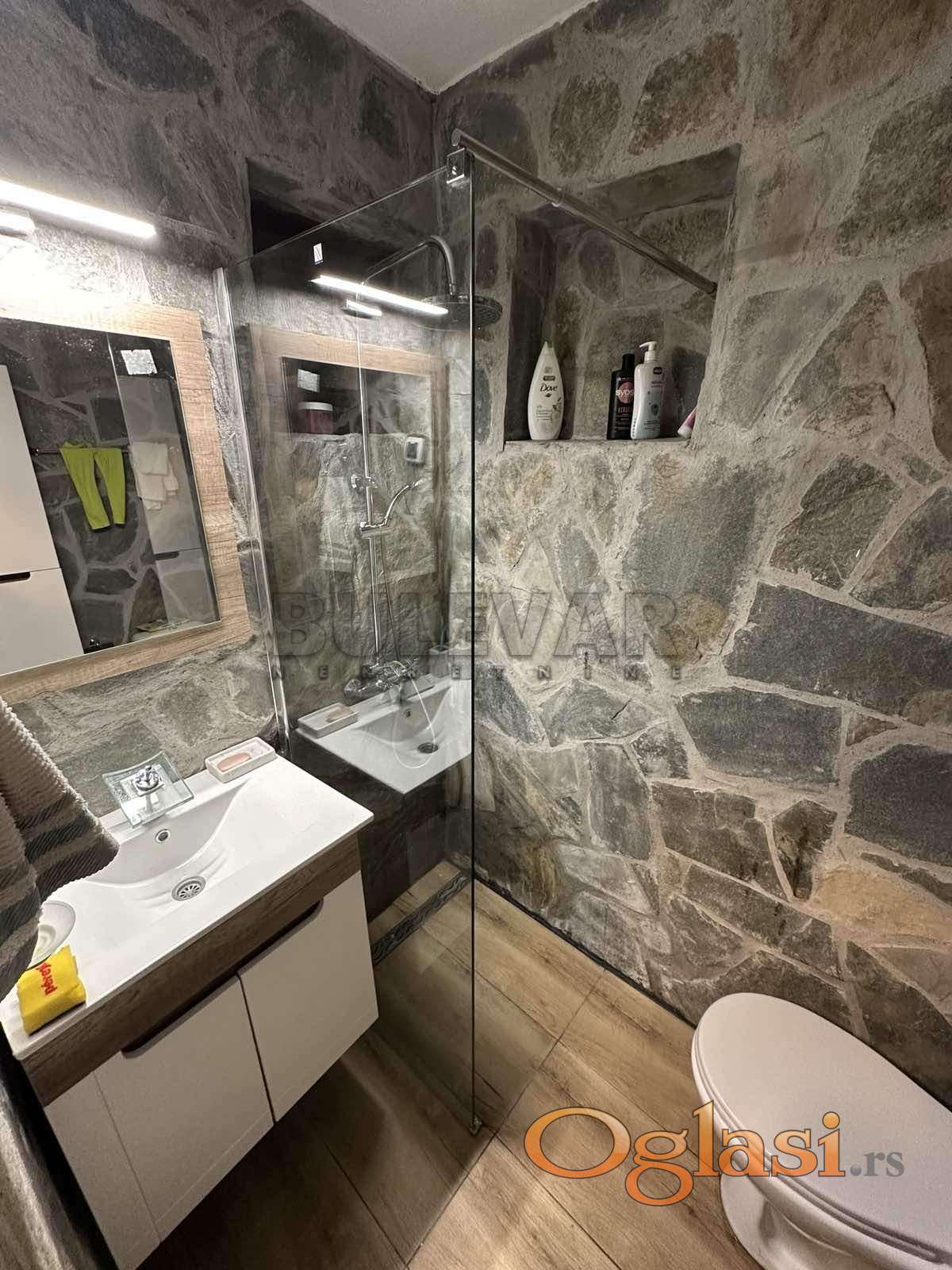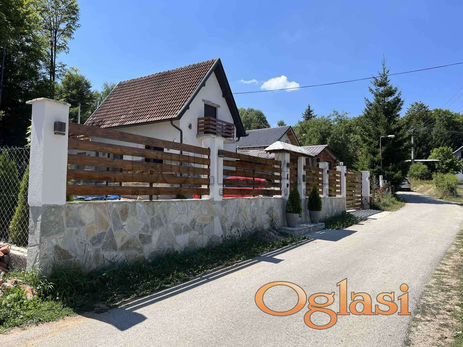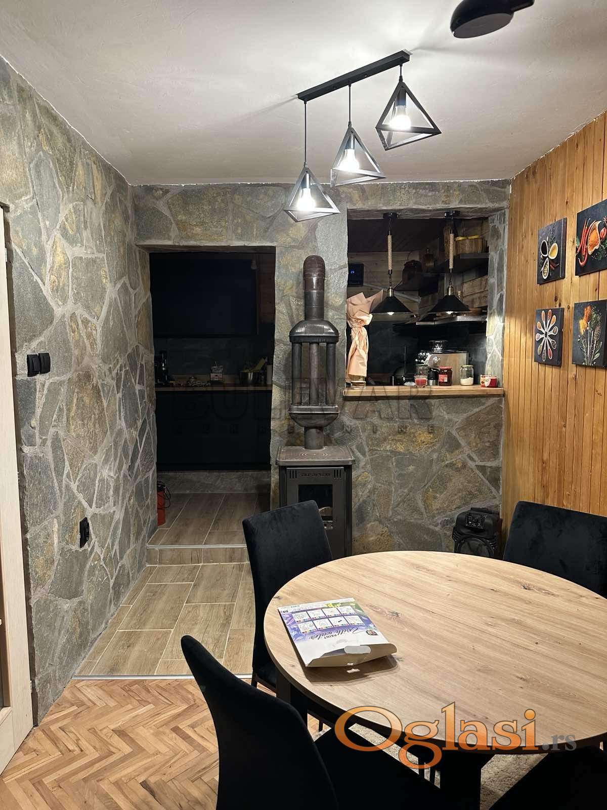 Na prodaju potpuno renovirana kuća na Vlasinskom jezeru, 120m2 na 315 m2 placa, 400m od jezera. Kuća se sastoji od prizemlja koje čine dnevna soba, trpezarija, kuhinja i kupatilo i potkrovlja na kojem su dve spavaće sobe i dve terase. Objekat je kompletno renoviran kvalitetnim materijalima i luksuzno je opremljen. Stolarija je drvena sa roletnama i komarnicima, spoljna izolacija je 10cm stiropora i dodatna 2cm unutrašnje izolacije,četiri inverter klime u objektu,peć na drva, video nadzor, interfon, automatsko otvaranje kapije, sistem za podzemno zalivanje travnjaka, rasveta u dvorištu. Prodaje se potpuno opremljen.Objekat se nalazi u mirnom delu i izlazi na asfaltni put, ima struju i vodu. Na parceli se nalaze i 2 manja pomoćna objekta. Moguća je zamena za nekretninu u Nišu. Ovo je samo deo naše ponude, za više informacija, stojimo vam na raspolaganju.