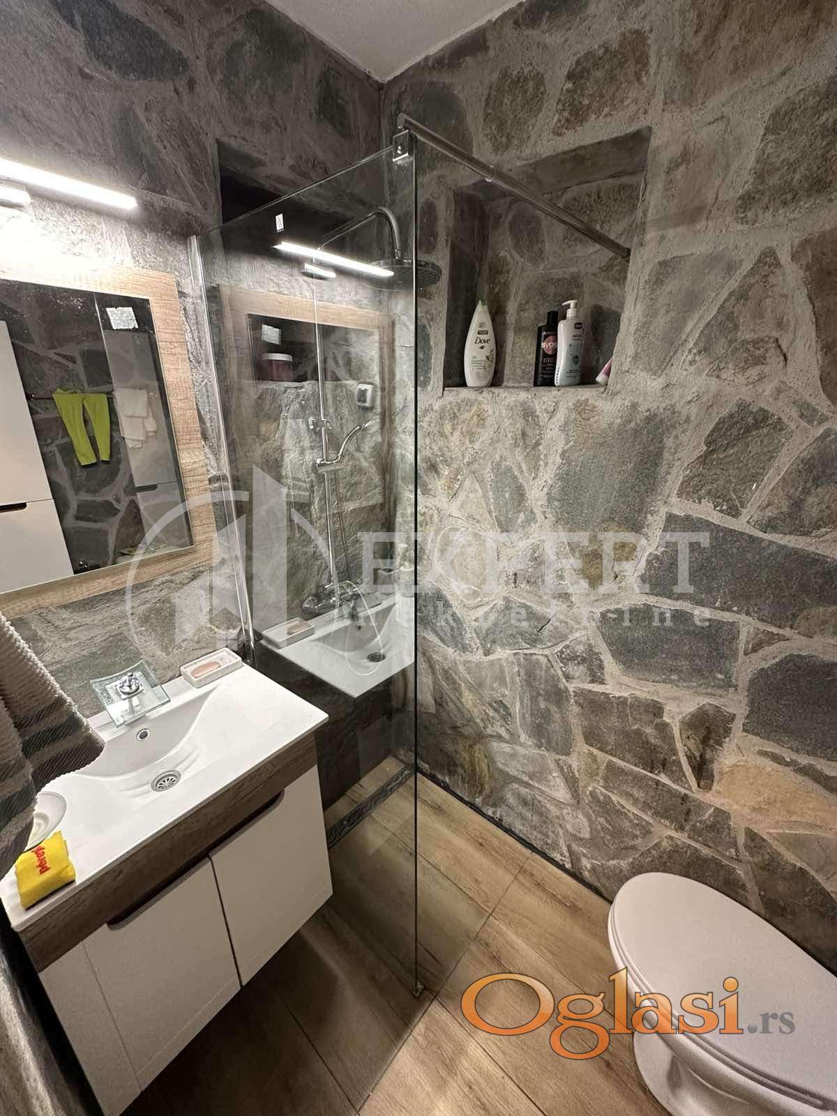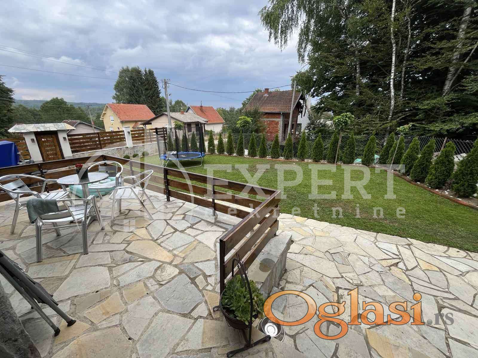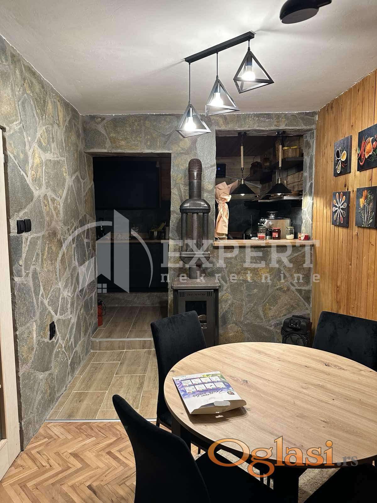 Na prodaju potpuno renovirana kuća na Vlasinskom jezeru, 120m2 na 315 m2 placa, 400m od jezera. Kuća se sastoji od prizemlja koje čine dnevna soba, trpezarija, kuhinja i kupatilo i potkrovlja na kojem su dve spavaće sobe i dve terase. Objekat je kompletno renoviran kvalitetnim materijalima i luksuzno je opremljen. Stolarija je drvena sa roletnama i komarnicima, spoljna izolacija je 10cm stiropora i dodatna 2cm unutrašnje izolacije,četiri inverter klime u objektu,peć na drva, video nadzor, interfon, automatsko otvaranje kapije, sistem za podzemno zalivanje travnjaka, rasveta u dvorištu. Prodaje se potpuno opremljen.Objekat se nalazi u mirnom delu i izlazi na asfaltni put, ima struju i vodu. Na parceli se nalaze i 2 manja pomoćna objekta. Moguća je zamena za nekretninu u Nišu. Ovo je samo deo naše ponude, za više informacija, stojimo vam na raspolaganju.