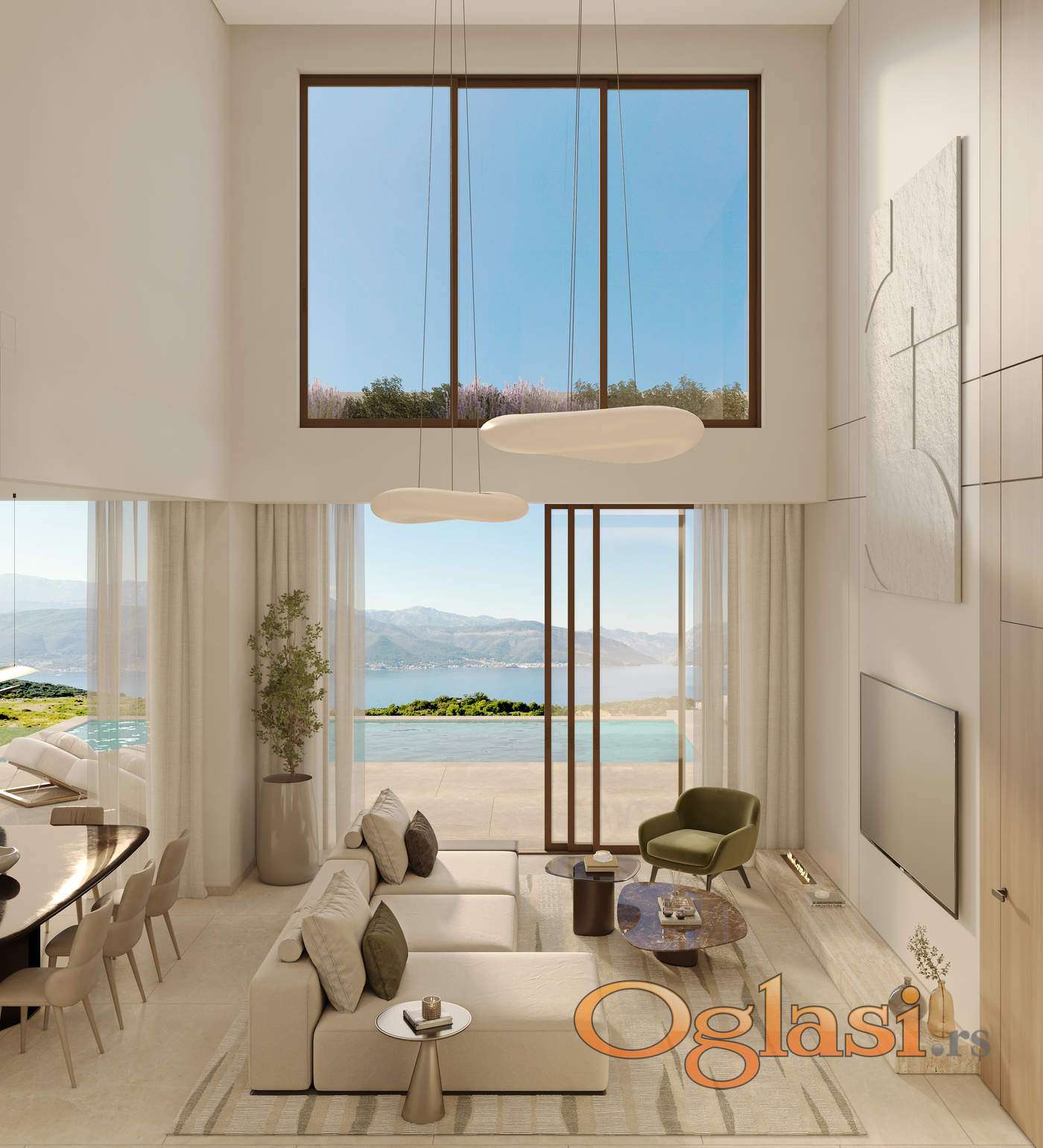 Sve rezidencije imaju panoramski pogled na more. Svaka ima pažljivo osmišljen raspored: dvije razine organski dijele na privatni prostor za opuštanje i prostor za prijem gostiju. Interijeri su dizajnirani u sofisticiranom mediteranskom stilu – u prirodnim nijansama, s toplim teksturama.